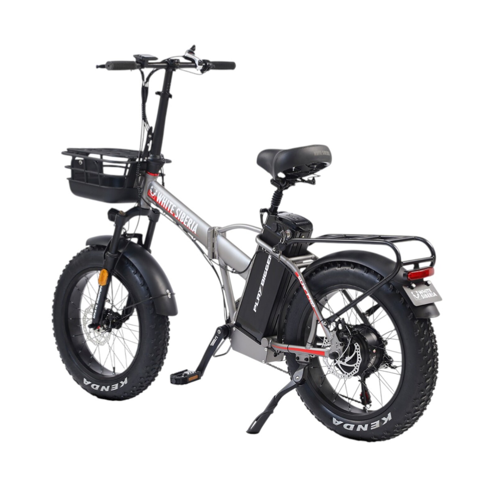 Электровелосипед WHITE SIBERIA SLAV PRO 1000WЭлектрический мини фет-байк - компактный и удобный маленький друг. С ним вы сможете комфортно передвигаться по городу, а в случае необходимости - сложить и уехать в пригород! Он создан для неспешных и комфортных велопрогулок по дорогам российских городов и пригорода!Чем же SLAV PRO так хорош?Мощный электромотор на 1000W отлично помогает на подъёмах в горку и экономит ваши силы во время дальних поездок! Он позволит вам взглянуть по-новому на покатушки - даёт насладиться дорогой и красотами города и парков!Усиленная рама из авиационного алюминия с легкосъёмной батареей на 48V 13A. Окрашена порошковой краской - надёжно защищена и красиво выглядит, благодаря 3 вариантам расцветки.Лёгкая, но прочная - велосипед в сборе весит всего 30 кг! Складная конструкция позволяет легко перевезти фет-байк в багажнике автомобиля или в общественном транспорте. Даже педали складываются! Так что во время хранения он занимает очень мало места.Колёса на 20 дюймов и шириной 4.0 - отличное соотношение манёвренности и проходимости! А благодаря резине Kenda с универсальным рисунком протектора - ещё и отличное сцепление с различными типами дорожных покрытий. Широкая резина лучше преодолевает различные препятствия - бордюры, корни деревьев, камни. В сочетании с регулируемой амортизационной вилкой - получается универсальный, устойчивый фет-байк.Металлические крылья на переднем и заднем колёсах полностью закрывают водителя от грязи, камней и брызг из-под колёс! Ведь широкая толстая резина с камерами даёт возможность ехать там, где другие идут пешком!Качественное навесное оборудование от фирмы SHIMANO, большой дисплей бортового компьютера с подсветкой, удобный лепесток газа, усиленный металлический багажник, передняя корзинка - всё это для вашего комфортного передвижения на мягком сидении электровелосипеда SLAV PRO 1000W.Дисковые механические тормоза спереди и сзади - просты и надёжны. А благодаря наличию подножке, ваш мини фет-байк может опереться и подождать, пока вы наслаждаетесь чашечкой ароматного кофе!Электровелосипед SLAV PRO - для ценителей компактных размеров, но огромных возможностей! Отдыхайте с удовольствием!