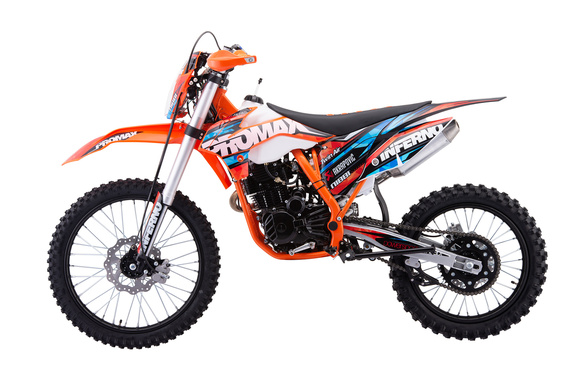 Тайваньский бренд, покоривший европейские страны, неустанно завоевывает рынок России, доказывая, что качество не означает высокий ценник! Для подтверждения своих слов – бренд дает гарантию 3 года на свою технику.Все мотоциклы PROMAX имеют Европейский сертификат качества. Применяются влагозащищенные разъемы проводки. Все подшипники обработаны специальной консистентной смазкой. «Quality in detail» (“Качество в мелочах”) - слоган компании PROMAX.ДвигательНовая модель PROMAX MX280 2024 модельного года для тех кто хочет больше! Больше скорости! Больше мощи! Больше адреналина! Встречайте PROMAX MX280 – покорителя бездорожья ! PROMAX MX280 - это выбор как продвинутых новичков, так и опытных райдеров. Мощный и надежный двигатель ZS 172FMM-3A (CB250-F) с воздушным охлаждением и 5-ступенчатой трансмиссией в паре со спортивным карбюратором Nibbi PZ30 и выхлопом Akrapovic Exhaust System гарантируют приятный выхлоп, стабильную работу и мощность 24 л.с. Рычаг сцепления имеет флажок для легкого выжима сцепления и правильного положения троса для максимального комфорта и полного контроля работы двигателя.Рама изготовлена с упором на надежность и долгий срок службы. Все узлы тщательно проварены, есть дополнительные усиления. На раму установлен пластиковый каркас, который защищает мотоботы и раму. Алюминиевый маятник KTM для сбалансированного веса и большей прочности.Спортивные колеса 21/18Алюминиевые обода от бренда Unison, сделанные из сплава 6065, соединены с фрезерованной ступицей 4мм спицами! Покрышки Kenda, благодаря мягкому составу, отлично держат сцепление с покрытием летом, а зимой выдерживают вкручивание шипов!Тормоза ANJIEДвухпоршневой суппорт спереди и однопоршневой сзади от производителя тормозных систем ANJIE, в сочетании с колодками, изготовленными из керамического материала, обеспечивают высокий коэффициент трения и эффективность торможения даже при высоких температурах дисков. Сами же диски толщиной 4мм – гарантия безопасности и плавной остановки.Сиденье PROMAXФирменное нескользящее сиденье PROMAX, выполненное по технологии anti-slip grip, держит любого райдера как суперклей: специальное ребристое водонепроницаемое покрытие позволяет чувствовать себя комфортно в любых погодных условиях.Электронная приборная панельМногофункциональная приборная панель со спидометром, тахометром, одометром, индикатором передач и заряда батареи. Влагозащитные разъемы подключения приборной панели, блоков управления и кнопок старт/стоп.Полностью диодная оптикаКороткоходная ручка газаРучка газа с коротким ходом от Nibbi Racing – пожалуй лучшее решение на подъемах и труднопроходимых участках. Нет нужды перехватывать ручку для получения большей мощности, достаточно подобрать необходимое усилие кисти и получить результат, оптимальный для стиля езды райдера!Приводная цепь ChohoЦепь Choho отличается от других большим запасом прочности, благодаря уплотнительному кольцу удерживающему смазку внутри и не пускающему пыль снаружи, предотвращая растяжение и низким уровнем шума – идеальное сочетание для тех, кто хочет как можно реже обслуживать технику и как можно больше эмоций получить!ПодвескаПодвеска WP, с диаметром пера в 41 мм, в заводской форме обладает широчайшими возможностями настройки, которых не представит ни один конкурент! При помощи внешних регуляторов и легко настраиваются прямо на трассе. Диапазон их нас