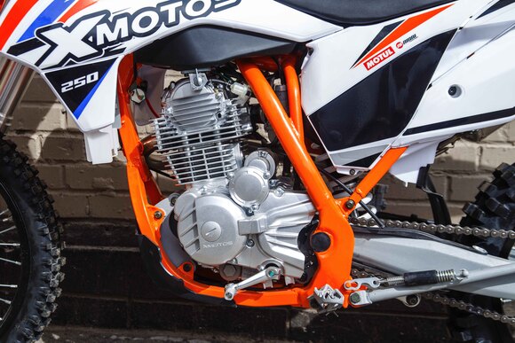 Новинка на Российском рынке - мотоцикл XMOTOS RACER 250 см.куб. 21/18 Эта модель кроссового мотоцикла скомплектована в лучших традициях полноразмерных китайских мотоциклов. В нем применены все компоненты, которые отлично зарекомендовали себя на нашем рынке и прошли испытание временем на надежность. В раме XMOTOS Racer Pro установлен 4-тактный мотор Zongshen 172 FMM с воздушным охлаждением, который можно запускать как при помощи кнопки электростартера, так и привычным рычагом кик-стартера. Показатели максимальной мощности силовой установки мотоцикла составляют около 21 лошадиных сил. При этом ключевые комплектующие и производительность компонентов остаются на достаточно высоком уровне: гибкий, устойчивый к ударам пластик, алюминиевые(7116) ободья колес, фара головного света и нержавеющий выхлопной тракт и банка глушителя приятно дополняют четкую работу двигателя и трансмиссии. Спортивный снаряд начального уровня позволит получить полноценные навыки управления техникой на треке и максимум удовольствия от мотопрогулок в хорошей компании.У нас Вы можете купить этот мотоцикл с бесплатной доставкой по РФ и гарантией до года. Также его можно приобрести в рассрочку или в кредит.