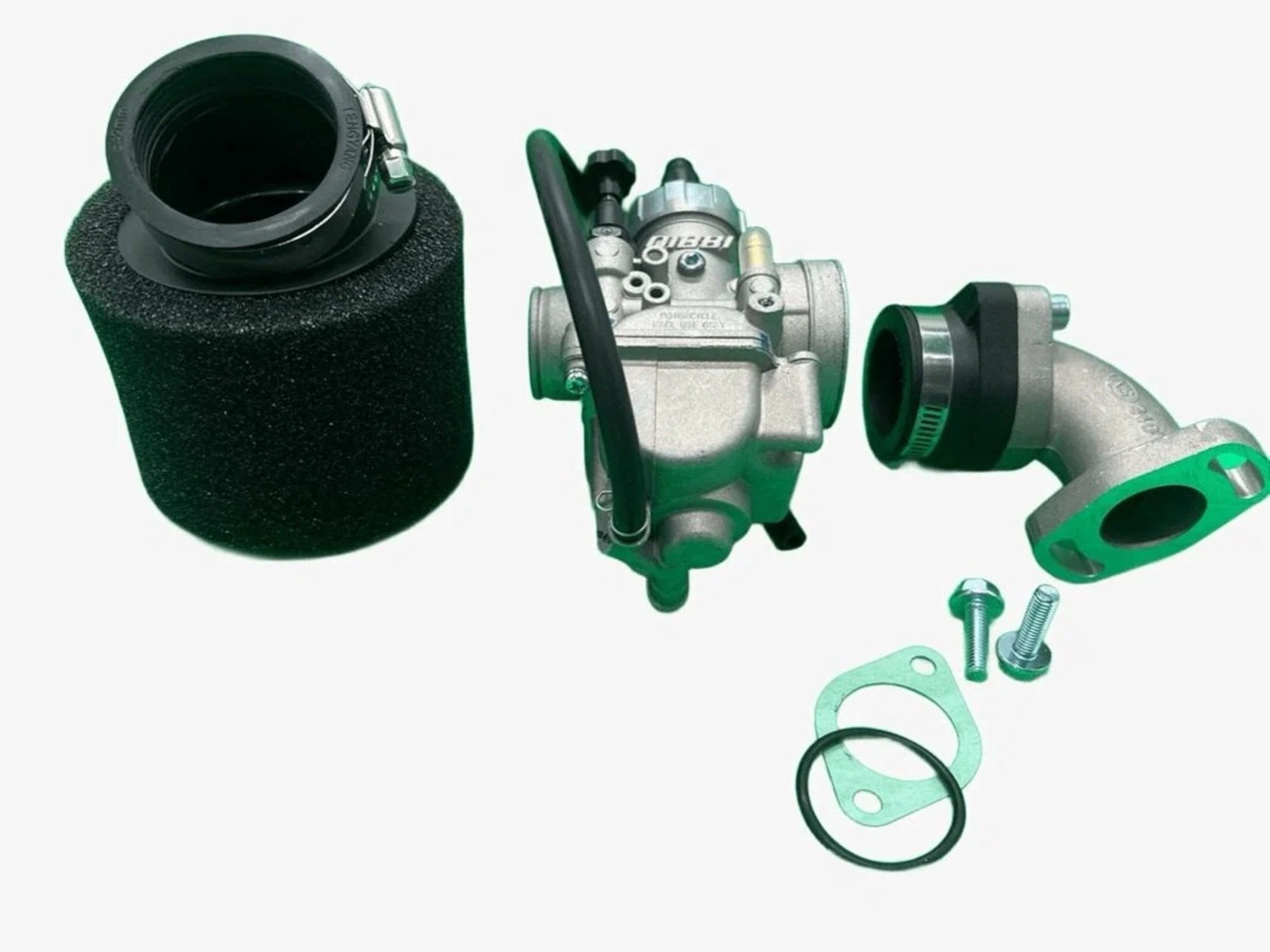 Включает все необходимое для монтажа: карбюратор, воздушный фильтр, впускной коллектор, крепеж и прокладки