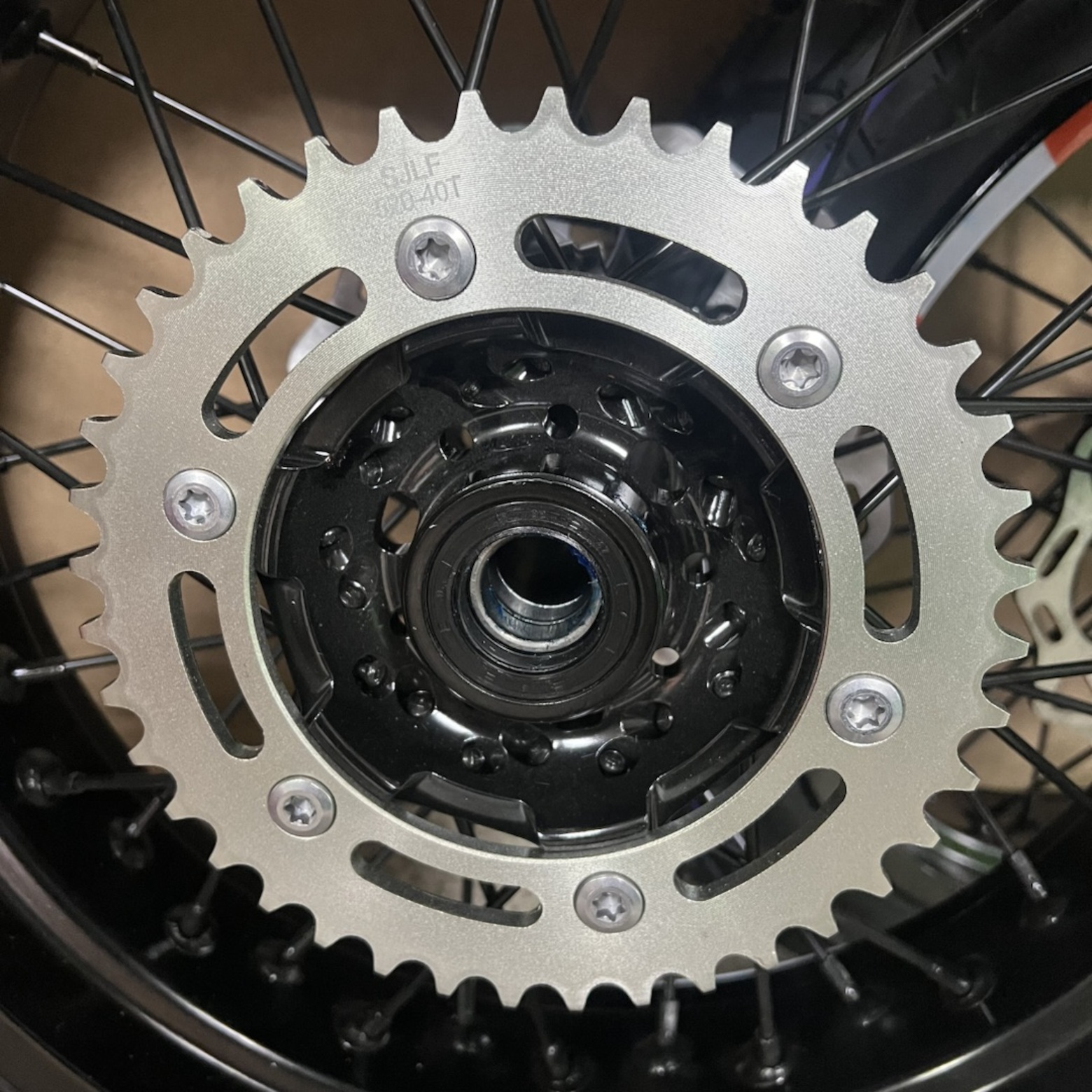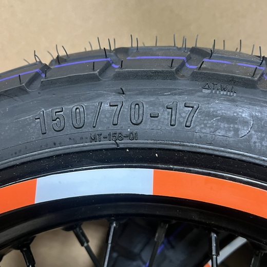 • Задний диск с шиной 150/70-17, ось 25 мм, тормозной диск 220 мм, звезда 520-40T, ширина ступицы 167 мм.