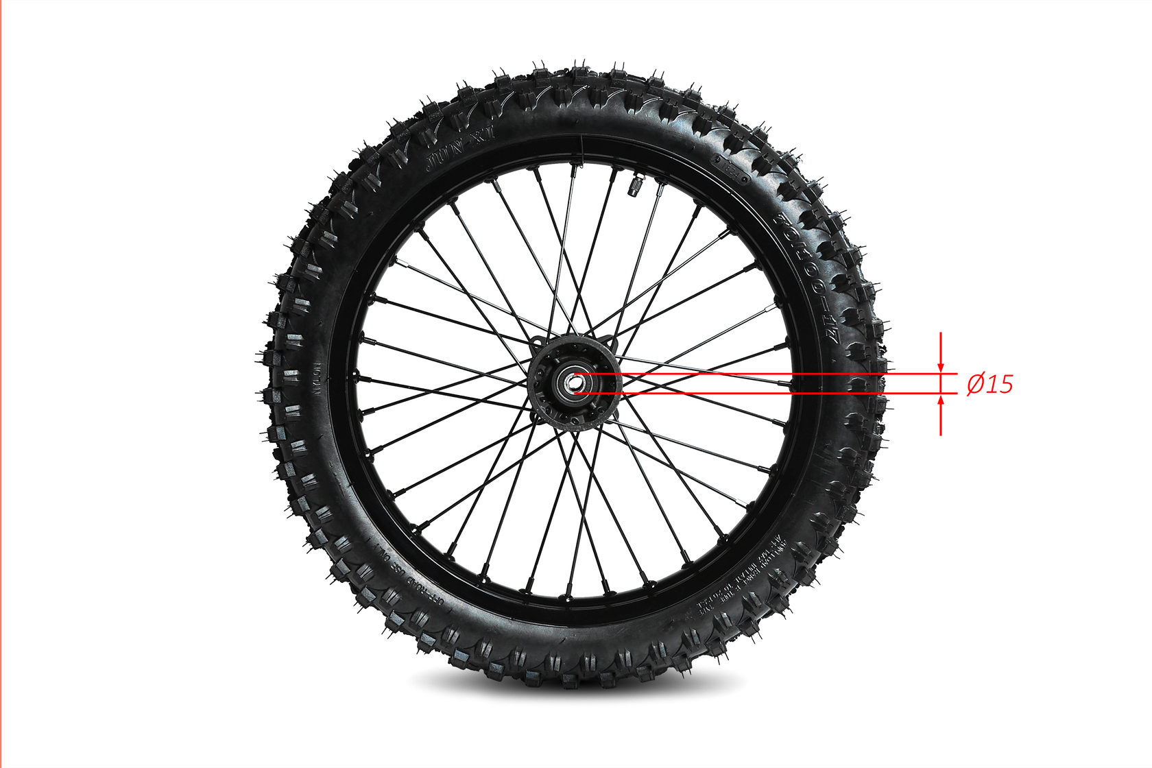Колесо в сборе переднее для питбайка R17 (алюминиевое, ось-15мм) (без торм.диска)