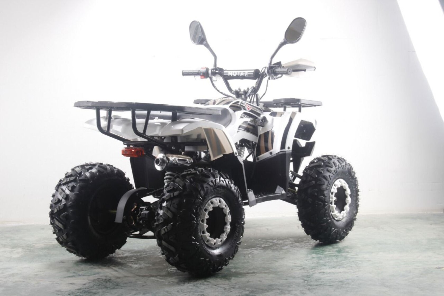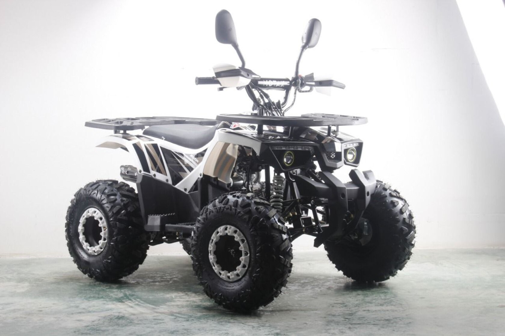 Подростковый квадроцикл MOTAX ATV Grizlik Premium одростковый квадроцикл в утилитарном дизайне, на больших 8-дюймовых колёсах с хорошими грунтозацепами. Подходит для детей и подростков от 6 до 16 лет.Квадроцикл оборудован тяговитым 4-х тактным двигателем, бесступенчатой полуавтоматической трансмиссией с одной передачей вперёд и передачей заднего хода. Также квадроцикл имеет богатую базовую комплектацию: он оборудован электрическим стартером, пультом дистанционного глушения и запуска двигателя, механическим ограничителем скорости, усиленным передним и задним багажником, лебедкой, комфортными гидравлическими амортизаторами, яркими передними светодиодными фарами и светодиодным задним фонарем со стоп сигналом, металлическим топливным баком, усиленной 428 приводной цепью. Передняя подвеска на независимых рычагах со съемными шаровыми опорами, что делает его очень комфортным и ремонтопригодным.Двигатель 125 кубов 4-х тактный.Мощность 10 л.с.Максимальная скорость 65 км/ч.Максимальная нагрузка 140 кг.Передние тормоза дисковыеЗадние тормоза дисковые гидравлические.В случае самовывоза оплата товаров производится в кассе магазина. Если товар доставляется курьером, то оплата осуществляется наличными курьеру в руки. При получении товара обязательно проверьте комплектацию товара, наличие договора купли продажи и чека.