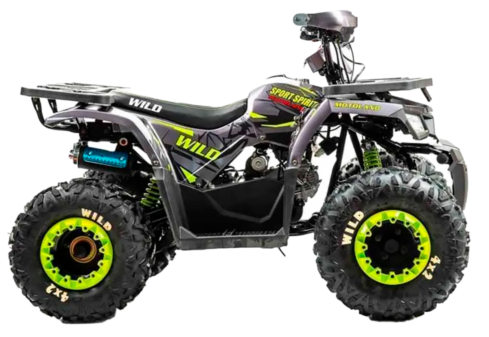 Квадроцикл Motoland ATV 125 Wild - улучшенный аналог, любимого всеми, квадроцикла ATV 125 Wild! Агрессивный и одновременно стильный дизайн нового квадроцикла без сомнения будет привлекать восхищенные и завистливые взгляды всех окружающих. Он способен развить скорость до 60 км/ч, что считается максимальной скоростью для данной модели. Предусмотрены багажники: передний и задний.Квадроцикл ATV 125Wild Motoland имеет уникальные амортизаторы, которые отличаются своей надежностью и обеспечивают удобную езду на представленном квадроцикле. Этот квадроцикл ориентирован исключительно на одного человека.
