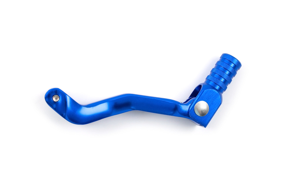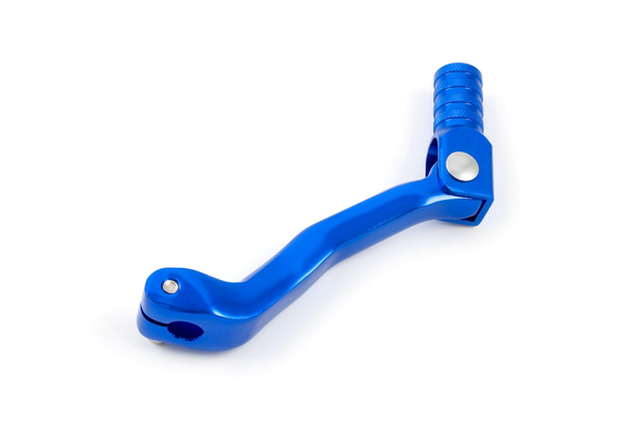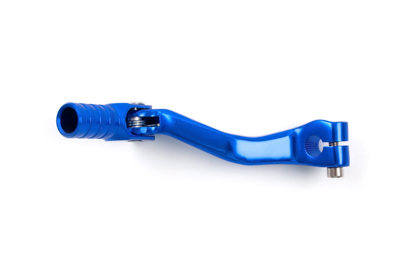 • Алюминиевый складной рычаг переключения передач синего цвета для эндуро мотоциклов с двигателями 165-172 FMM и 174 CBS-NB. Изготовлен из литого алюминия со складным кончиком, который предотвращает поломку рычага при падении или боковом ударе. Универсальная конструкция с вылетом, не гнет вал при падениях. Установка без втулки. Совместим с двигателями 165FMM, ZS170MM-2, ZS172-3A, ZS172-5A, ZS174MN-3.