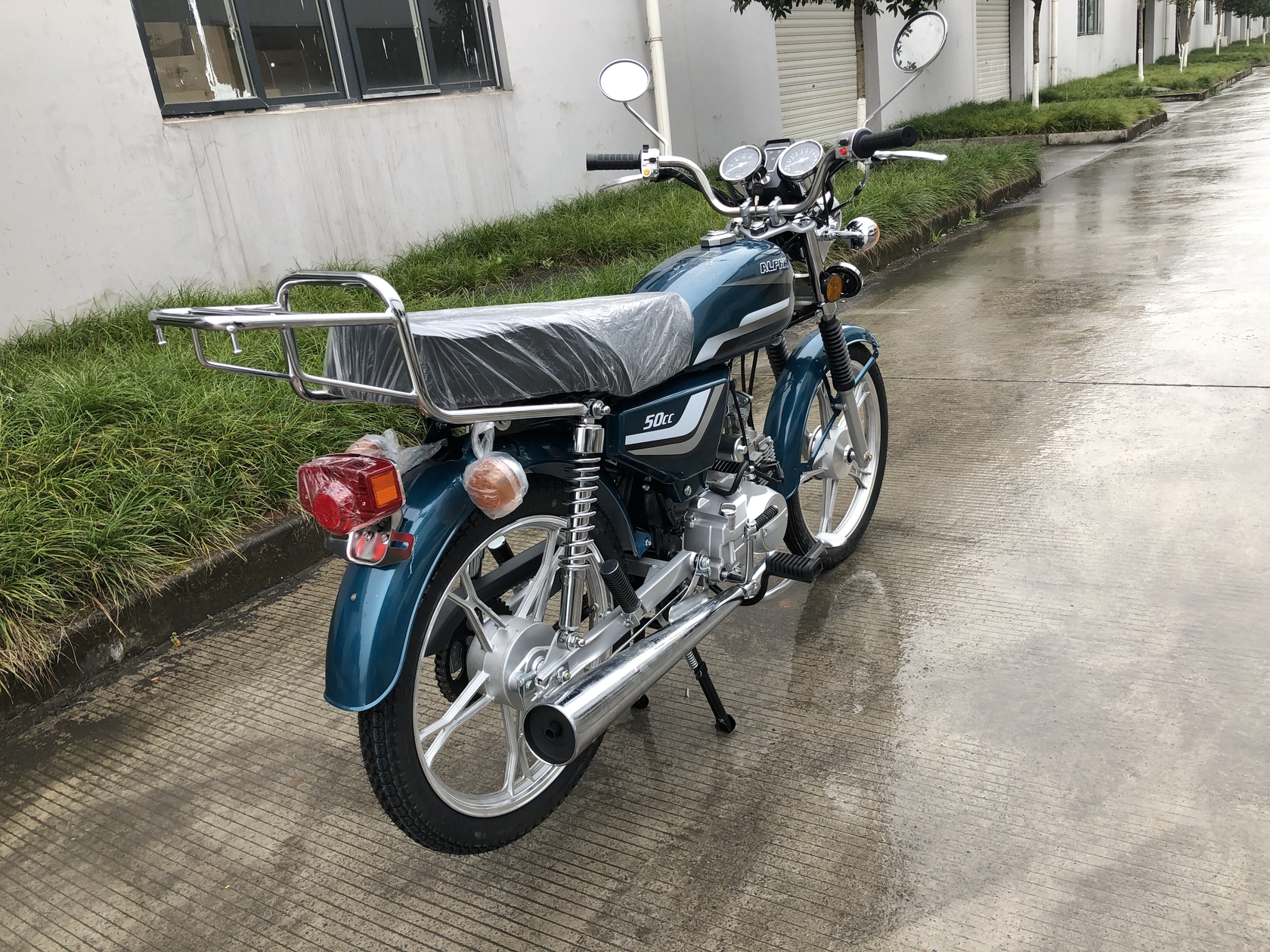 Комплектация Тормозная система – два барабанных тормоза. Усиленные тросы переднего тормоза и сцепления. Кроме того, на Regulmoto Alpha (RM-1) установлены зеркала заднего вида, подножки для пассажира, багажный кофр, кожух защиты цепи .