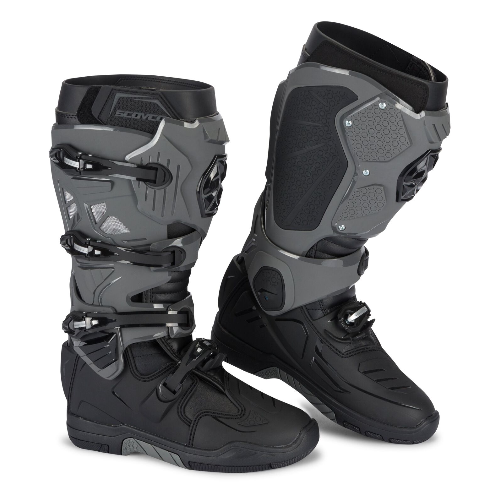 :Описание продукта::Это многофункциональные внедорожные мотоциклетные ботинки с продуманной системой защиты, которая позволяет легко справляться с растяжениями и компрессионными травмами. Они обеспечивают бесстрашную езду независимо от дорожных условий, а их продуманный дизайн гарантирует безопасность и удовольствие от езды. : ::Структура продукта: : ::• Защитная конструкция из ТПУ, охватывающая большеберцовую кость, обеспечивает поглощение ударов на 360 , повышая защитные возможности щитка для голени. :::• Влагоотводящая и дышащая подкладка обеспечивает сухость и комфорт ног в течение длительного времени. :::• Соответствует стандарту CE (EN 13634:2017) для защитной обуви для мотоциклистов, что обеспечивает надёжную защиту во время поездок. :::• Пятка и голеностопная часть обуви имеют эластичную складчатую конструкцию, обеспечивающую свободу движений и удобную посадку без сдавливания. :::• Четырёхступенчатая быстросъёмная пряжка для удобства ношения и плотного прилегания к ноге. :::• Композитная система управления сцеплением с поверхностью обеспечивает надежное сцепление, позволяя без труда преодолевать сложные участки местности и справляться с погодными условиями. : ::Многонаправленная защита TPU::Защита суставов::Сертифицированный CE::Регулируемая пряжка::Удобно и уютно::Дизайн с отворотом на верхней части::Предотвращает чрезмерное сгибание::Резиновая подошва::Встроенный стальной сердечник для усиленной поддержки, износостойкости и противоскользящих свойств::Удобная подкладка::Протектор с логотипом спереди на голени::Усиленная прокладка::Система стабилизации голеностопного сустава::Стабилизирует и поддерживает стопу:
