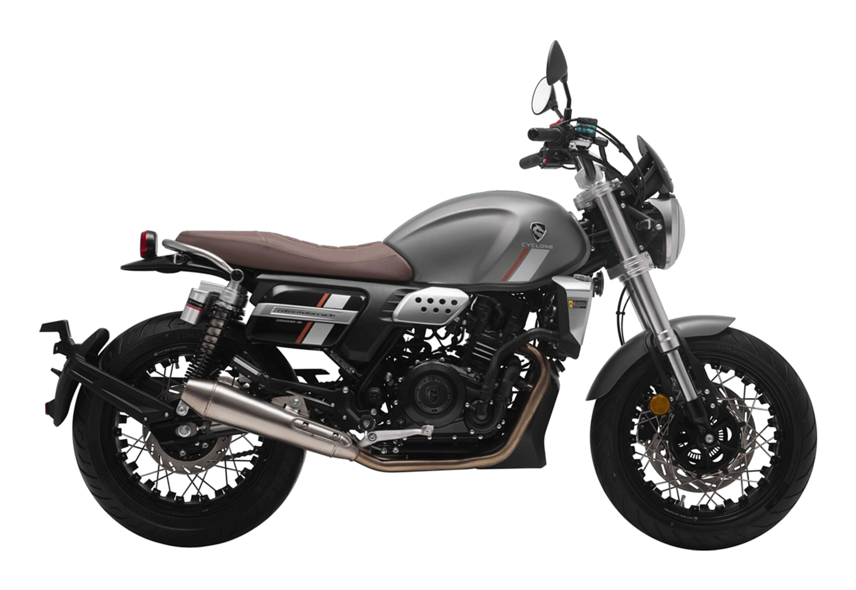 CYCLONE RE401 (SR400-B) 2024 – классик, в котором подчёркнутая простота объединяется с современными технологиями. Данная модель является более продвинутой версией модели RE3 (SR-400) – мотоцикл обладает более современным дизайном, снабжён стильными металлическими накладками на радиатор, а также топливным баком, объём которого увеличен до 20 литров.Двухцилиндровый четырёхтактный двигатель объёмом 401 см3 выдаёт 43 л.с. на 9500 об/мин. Инжекторный впрыск топлива с инжектором BOSCH увеличивает топливную экономичность, а также позволяет добиться высокой приёмистости и неприхотливости агрегата. Жидкостная система охлаждения не допустит перегрева двигателя даже при самом агрессивном вождении. На мотоцикл установлена 6-ступенчатая механическая коробка передач.Максимальная скорость мотоцикла составляет 150 км/ч.RE401 оснащён классическими спицованными колёсами диаметром 17 дюймов. Колёса обуты в бескамерные покрышки TIMSUN. С неровностями дороги эффективно справляются телескопическая вилка перевёрнутого типа спереди и маятник с двумя амортизаторами сзади. Ход передней подвески составляет 130 мм, задней – 81 мм. Оба компонента подвески являются регулируемыми. Эффективное и безопасное замедление с любых скоростей обеспечивают гидравлические дисковые тормоза с ABS спереди и сзади.Клиренс мотоцикла составляет 170 мм. Объём топливного бака – 20 л. Снаряжённая масса – 186 кг.Из дополнительного оборудования можно выделить USB-порт и датчики давления в шинах.Мотоцикл сочетает в себе отличные технические характеристики, комфорт и надёжность, что позволяет вам ощутить настоящую свободу на любой дороге.