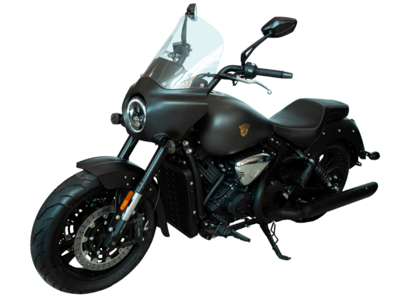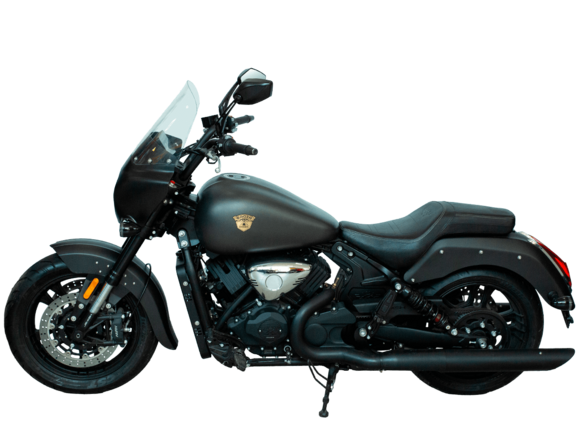 GROZA ML800 – роскошный круизёр, который создан для суперкомфортного перемещения на любые расстояния. Его дизайн исполнен в классическом стиле, соответствующем всем канонам данного типа мотоциклов.Двухцилиндровый V-образный двигатель объёмом 800 см3 мощностью 61 л.с. при высоких показателях динамики и отличном крутящем моменте способен разгонять аппарат до 180 км/ч. Инжекторный впрыск топлива с инжектором DELPHI увеличивает топливную экономичность, а также позволяет добиться высокой приёмистости и неприхотливости агрегата. Привод на ведущее колесо осуществляется ремнём знаменитой марки USA Gates. Жидкостная система охлаждения не допустит перегрева мотора даже на самых непростых маршрутах.Аппарат имеет 6-ступенчатую механическую коробку передач с классической схемой “1-N-2-3-4-5-6”. На мотоцикл установлены литые алюминиевые диски диаметром 17 дюймов. С неровностями дороги эффективно справляются телескопическая вилка перевёрнутого типа спереди и маятник с двумя амортизаторами сзади. Подвеска имеет 7 ступеней регулировки, что обеспечивает лёгкую перестройку на различные режимы езды. Для всего класса круизёров такая опция – большая редкость. Эффективное и безопасное замедление с любых скоростей обеспечивают гидравлические дисковые тормоза спереди и сзади от компании NISSIN.Мощный обтекатель и ветровое стекло эффективно снижают сопротивление ветра и повышают комфорт езды. Длинное заднее крыло со светодиодными фонарями позволяет снизить воздействие бокового ветра на мотоцикл при движении на высоких скоростях.Мотоцикл оснащён светодиодной головной оптикой узнаваемого дизайна.Мотоцикл сочетает в себе отличные технические характеристики, богатое оснащение, комфорт и надёжность, что позволяет вам ощутить настоящую свободу, отправившись на нём в любое путешествие.Комплектация и внешний вид мотоцикла могут отличаться в зависимости от поставки. Изображение на сайте не гарантирует наличие тех или иных опций. Уточняйте информацию при оформлении заказа.