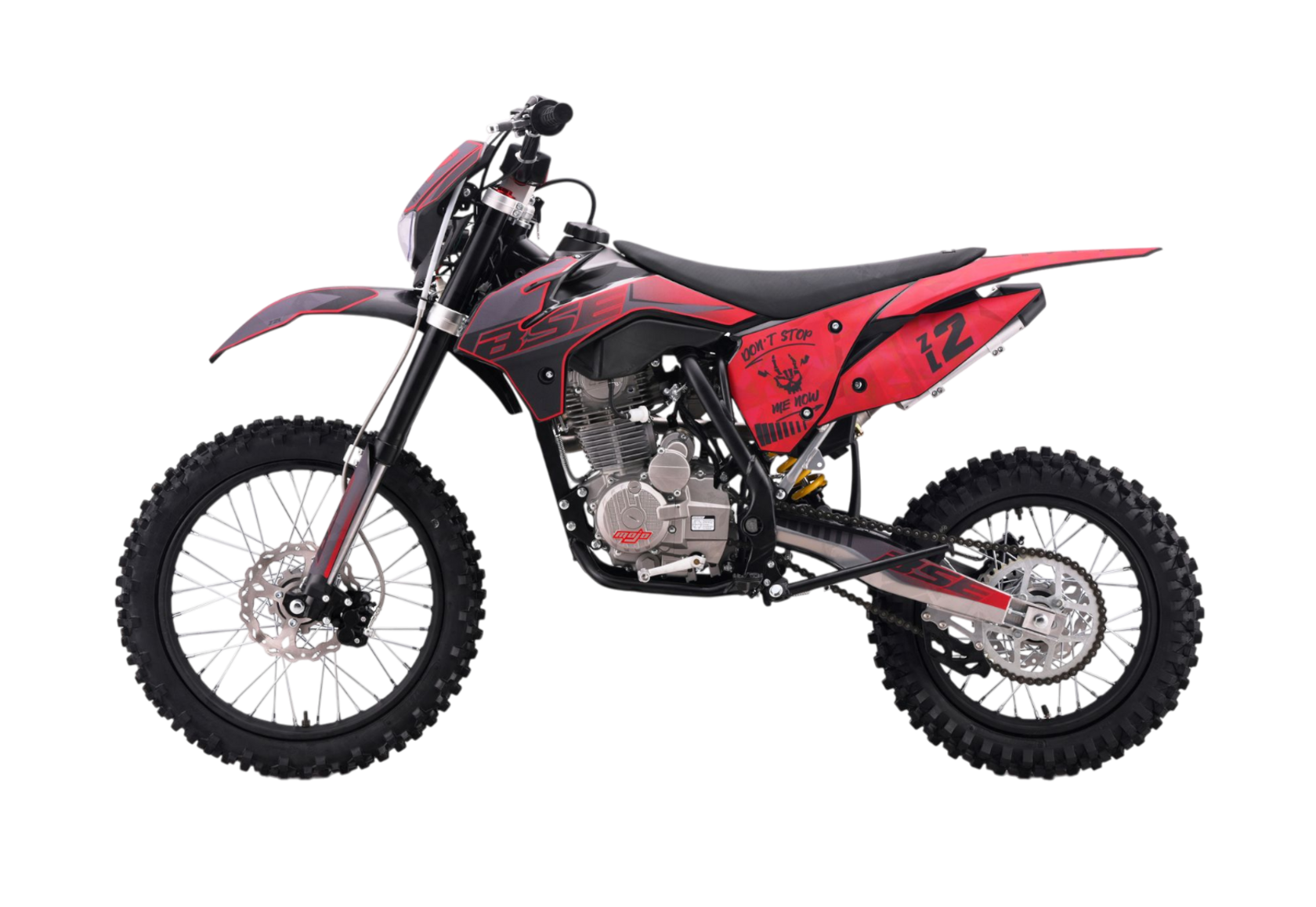 BSE Z2L – надежный эндуро-мотоцикл для бездорожья.Двигатель: ZONSEN 166, 17 л.с., воздушное охлаждение – надежность и простота обслуживания. Две версии колесных пар: - 21"/18"