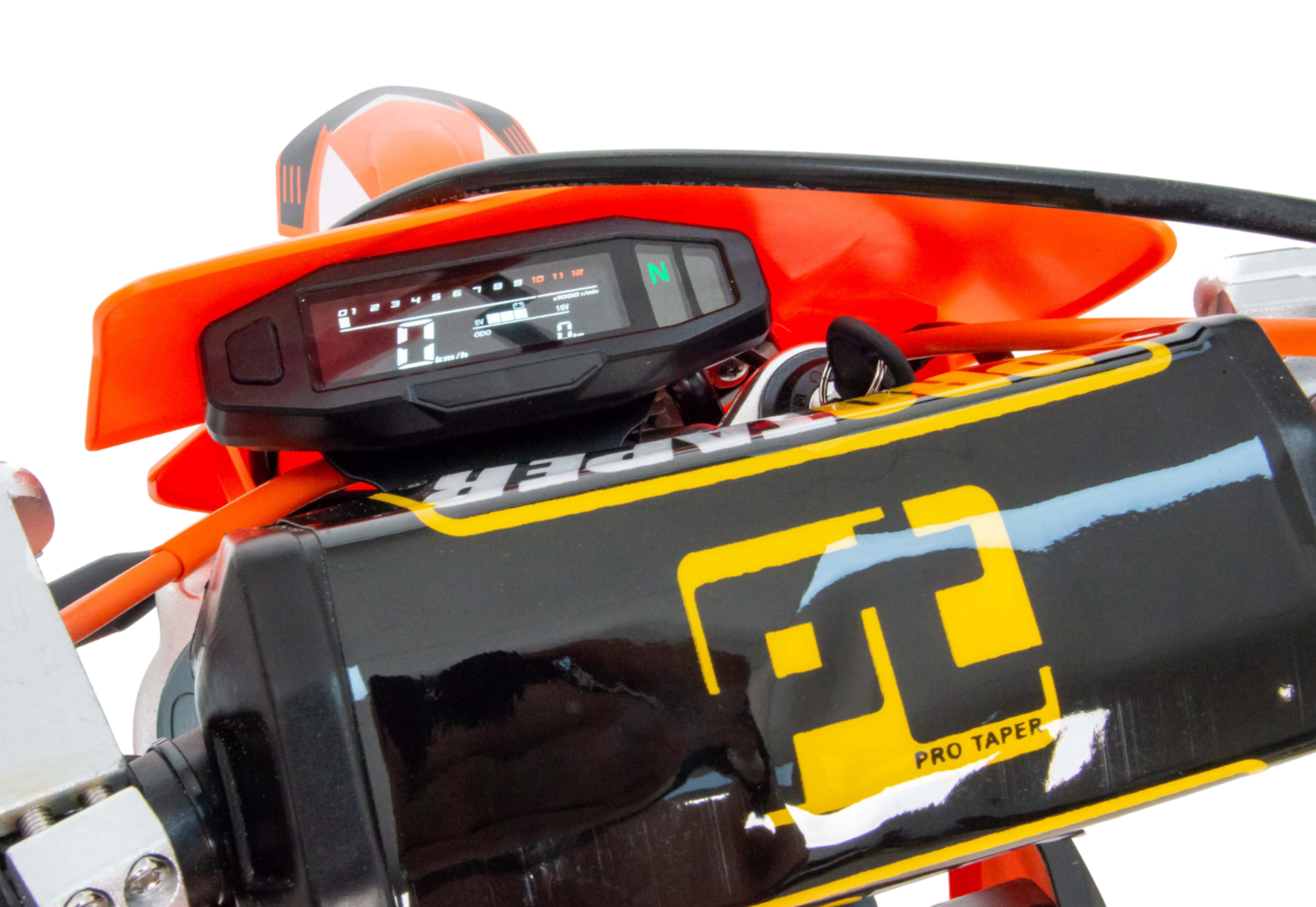 • В отличие от базовой версии, здесь установлены поворотники и задний стоп-сигнал, что делает мотоцикл более универсальным (хотя ПТС по-прежнему отсутствует, подчёркивая его внедорожную специализацию).