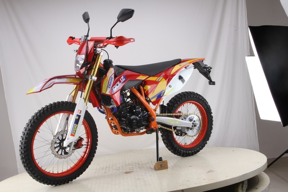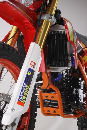 Комплектация Стальная защита двигателя, защита рук, стальная защита цепи, изогнутый кик, подножки для второго пассажира, зеркала заднего вида,тихий глушитель, стальной руль с перемычкой, крепление под номер. Тормоза дисковые, гидравлические.