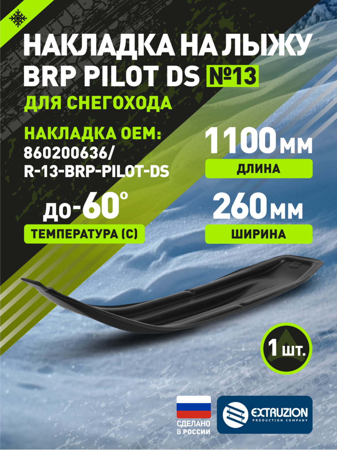 • Специализированная накладка на лыжи для снегоходов BRP с лыжами модели Pilot DS. Разработана для повышения проходимости и защиты стандартных лыж от износа и повреждений. Обеспечивает улучшение ходовых качеств и повышенную плавучесть в глубоком снегу.