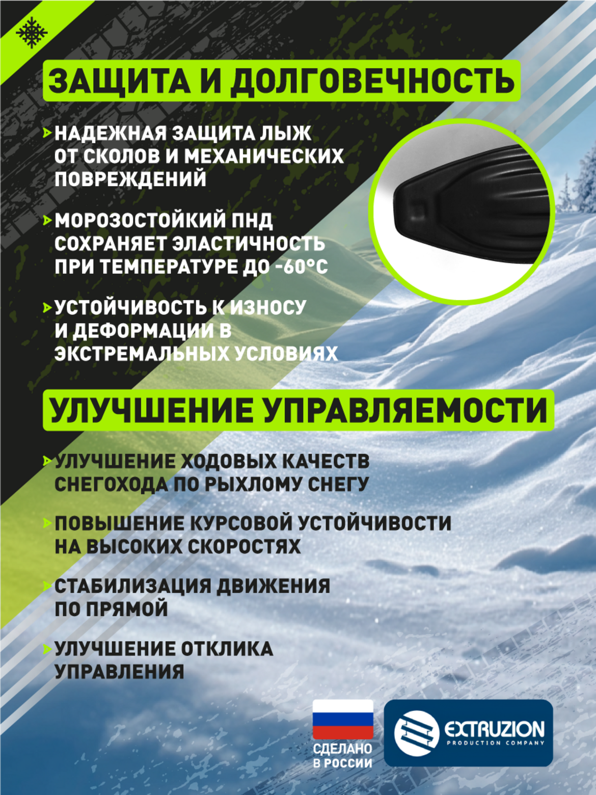 • • Значительное уменьшение износа оригинальных лыж и элементов подвески
