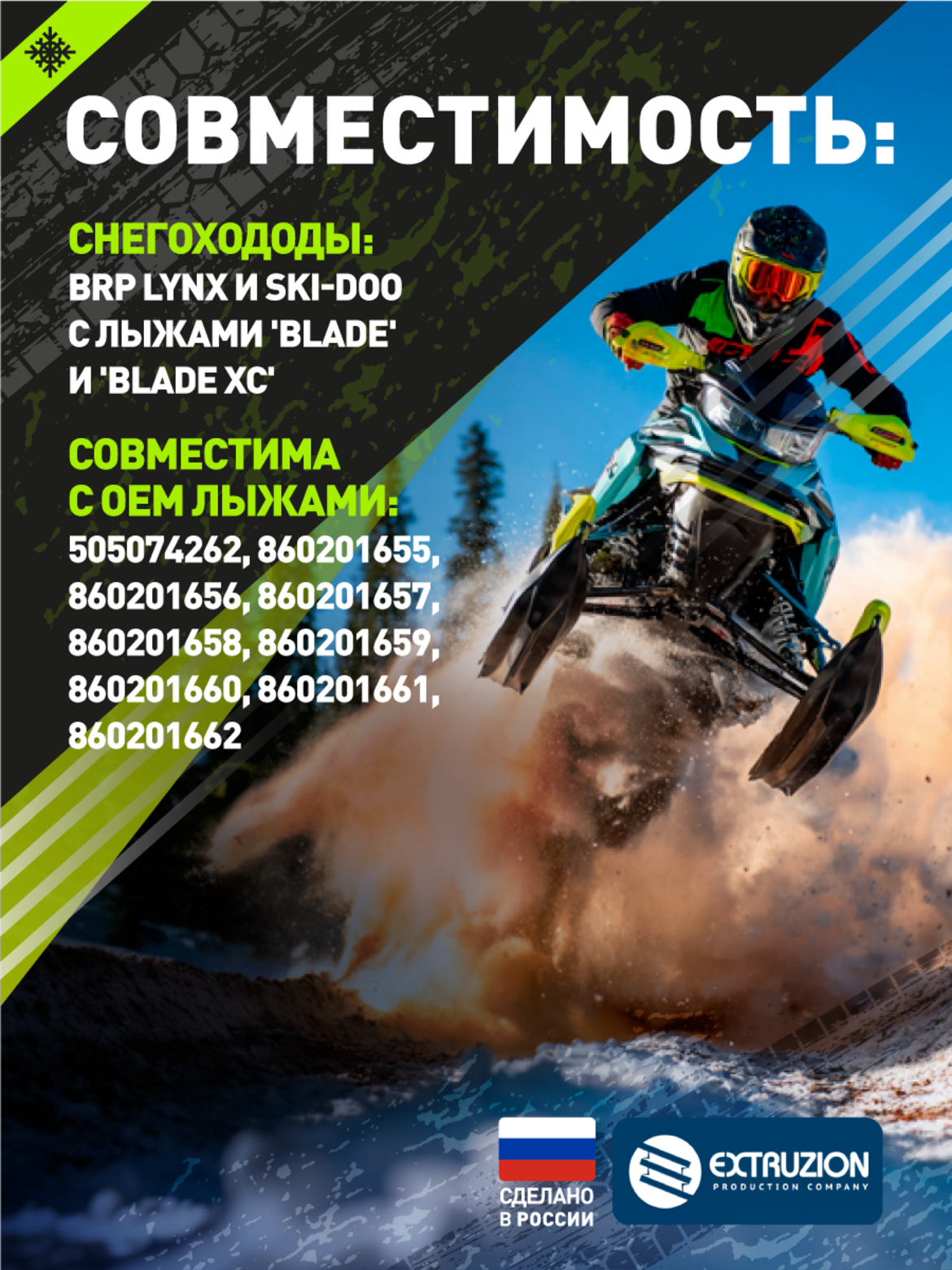 • • Совместима с OEM лыжами: 505074262, 860201655, 860201656, 860201657, 860201658, 860201659, 860201660, 860201661, 860201662