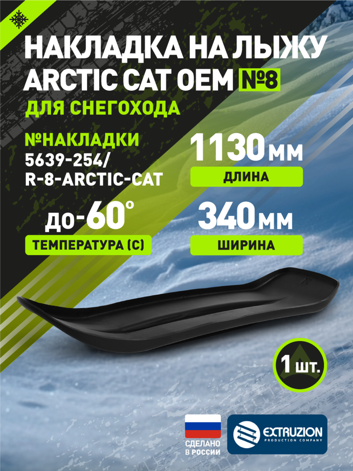 Главная ... Накладки на лыжи Накладка на лыжу №8 для снегохода Arctic Cat 1130*340*6 (1шт)