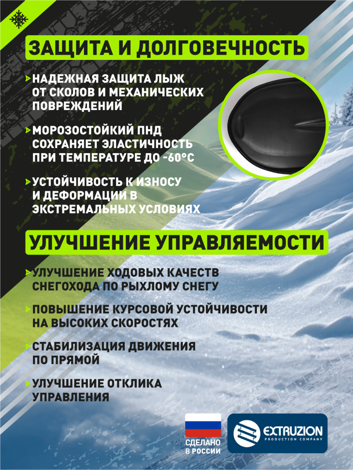 Увеличивает проходимость техники по рыхлому снегу и глубоким сугробам