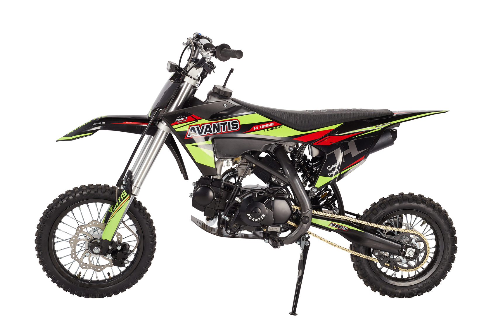 Питбайк Avantis H12-E Classic — это надежный выбор для любителей активного отдыха и начинающих гонщиков. Он оснащен 125-кубовым двигателем YX120 мощностью 10 л.с., который работает на топливе АИ-92. Запуск двигателя возможен как с электростартера, так и с кикстартера, что добавляет удобства в эксплуатации.Гидравлические дисковые тормоза с армированными шлангами на обоих колесах обеспечивают уверенное торможение.Комплектация Avantis H12-E Classic включает элементы, способствующие повышенной износостойкости и комфорту, такие как обновленное сидение, короткоходная ручка газа и защита двигателя.Пластиковый топливный бак (6.5 л) и легкий вес делают управление питбайком более маневренным и удобным.