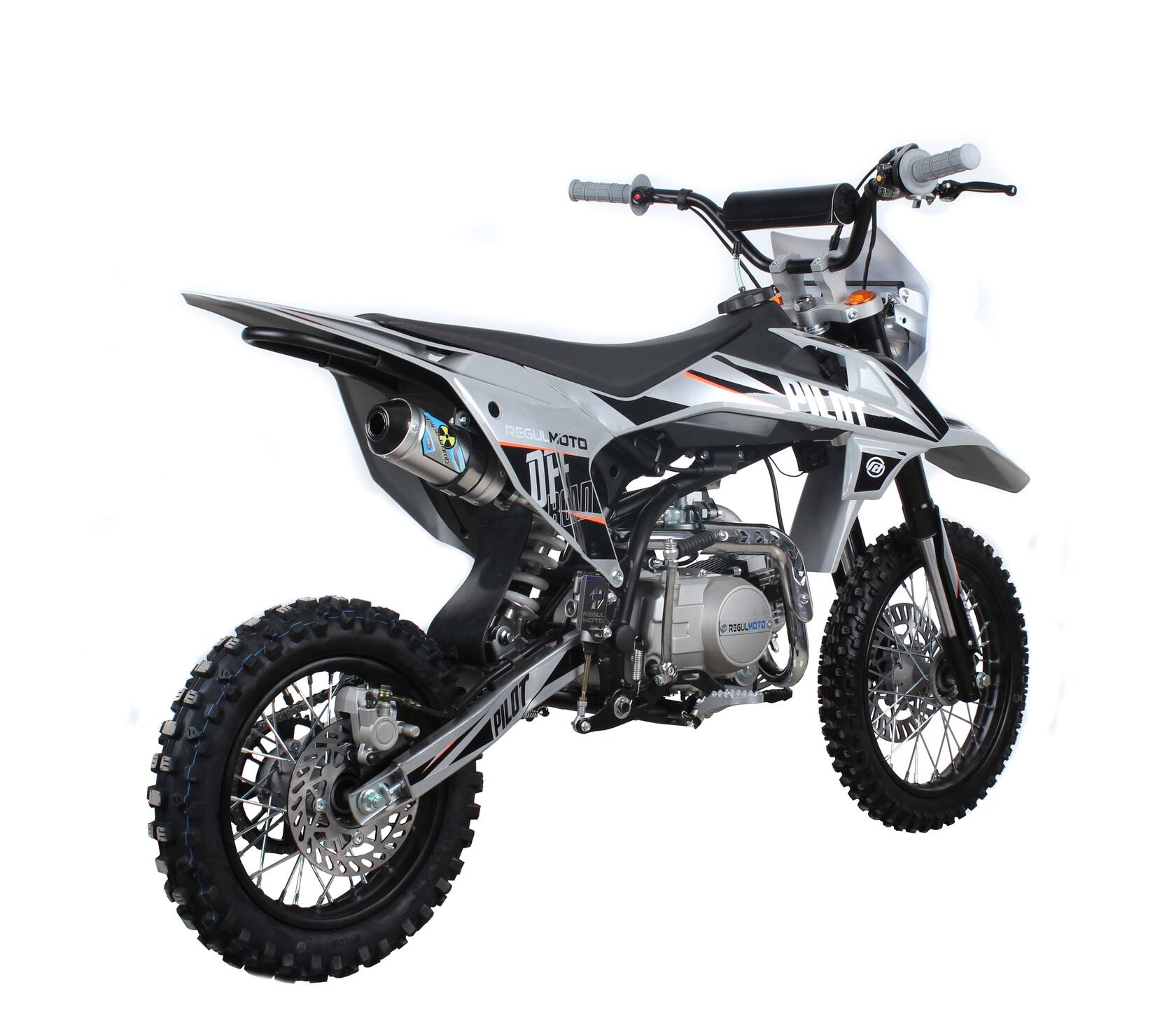 Regulmoto Pilot 110 c электростартером и полуавтоматической коробкой передач – питбайк начального уровня, созданный специалистами Американского мотобренда PitsterPro для юных мотогонщиков.Данная модель представляет линейку мототехники Regulmoto модельного ряда 2021 года, отличается высокой надежностью и простотой в эксплуатации.В прочной и надежной раме питбайка стоит 4х-тактный двигатель YX110 воздушного охлаждения с 4-ступенчатой полуавтоматической трансмиссией.Высокий класс используемых комплектующих обеспечивают необходимый для внедорожной мототехники уровень надёжности и комфорта.Яркая светодиодная фара позволяет использовать питбайк также в тёмное время суток.В 2021 году Regulmoto Pilot получил ряд обновлений – кроме нового дизайна графики, изменения коснулись дизайна пластикового обвеса, подножек, рычагов тормоза, переключения передач и глушителя.Эта модель рассчитана на детей и подростков возрастом от 6 до 12 лет.Наличие полуавтоматической трансмиссии позволяет детям и подросткам с минимальным опытом управления двухколесной мототехникой быстро освоить основы и совершенствовать навыки вождения на бездорожье.