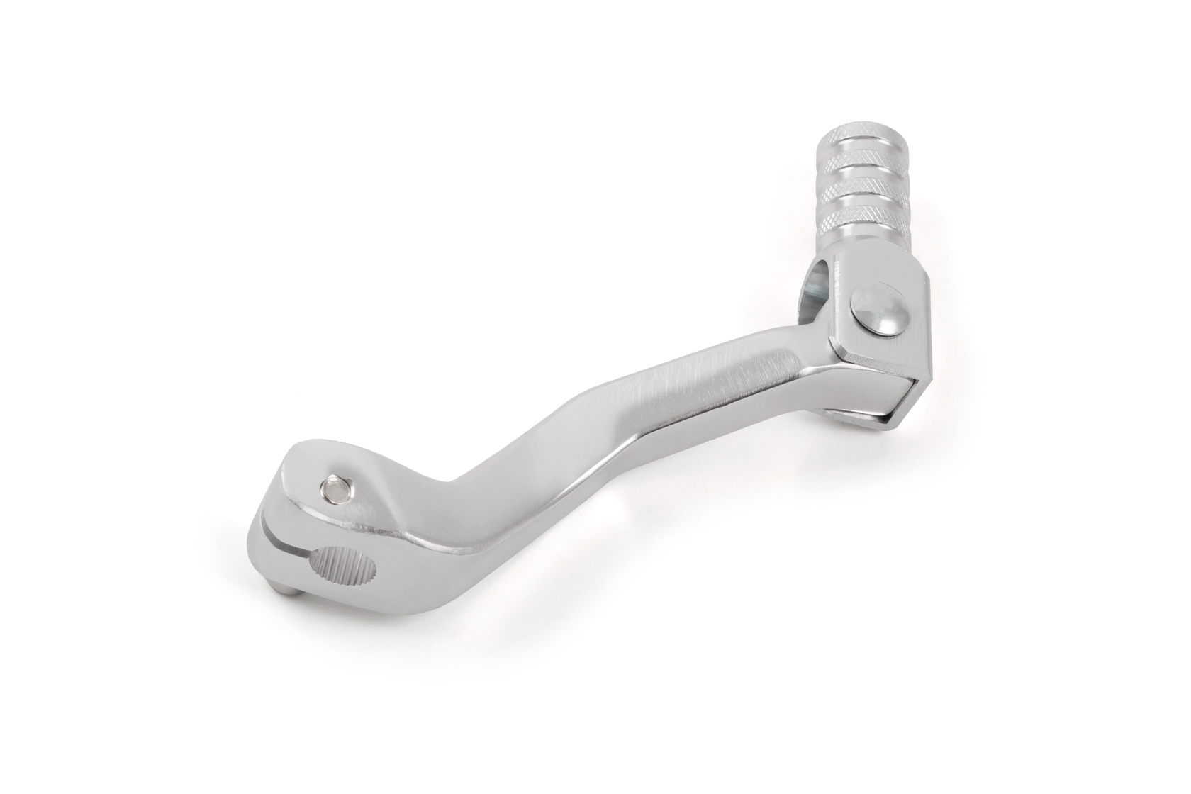 • Алюминиевый складной рычаг переключения передач серебристого цвета для эндуро мотоциклов с двигателями 165-172 FMM и 174 CBS-NB. Изготовлен из литого алюминия со складным кончиком, который предотвращает поломку рычага при падении или боковом ударе. Универсальная конструкция с вылетом, не гнет вал при падениях. Установка без втулки. Совместим с двигателями 165FMM, ZS170MM-2, ZS172-3A, ZS172-5A, ZS174MN-3.