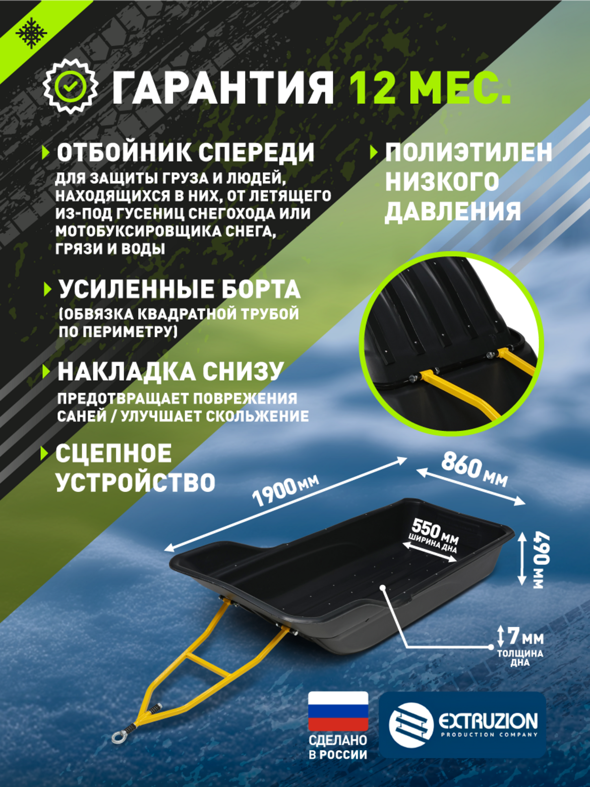 • • Комплектация: сцепное устройство + стропы обвязки + накладные полозья