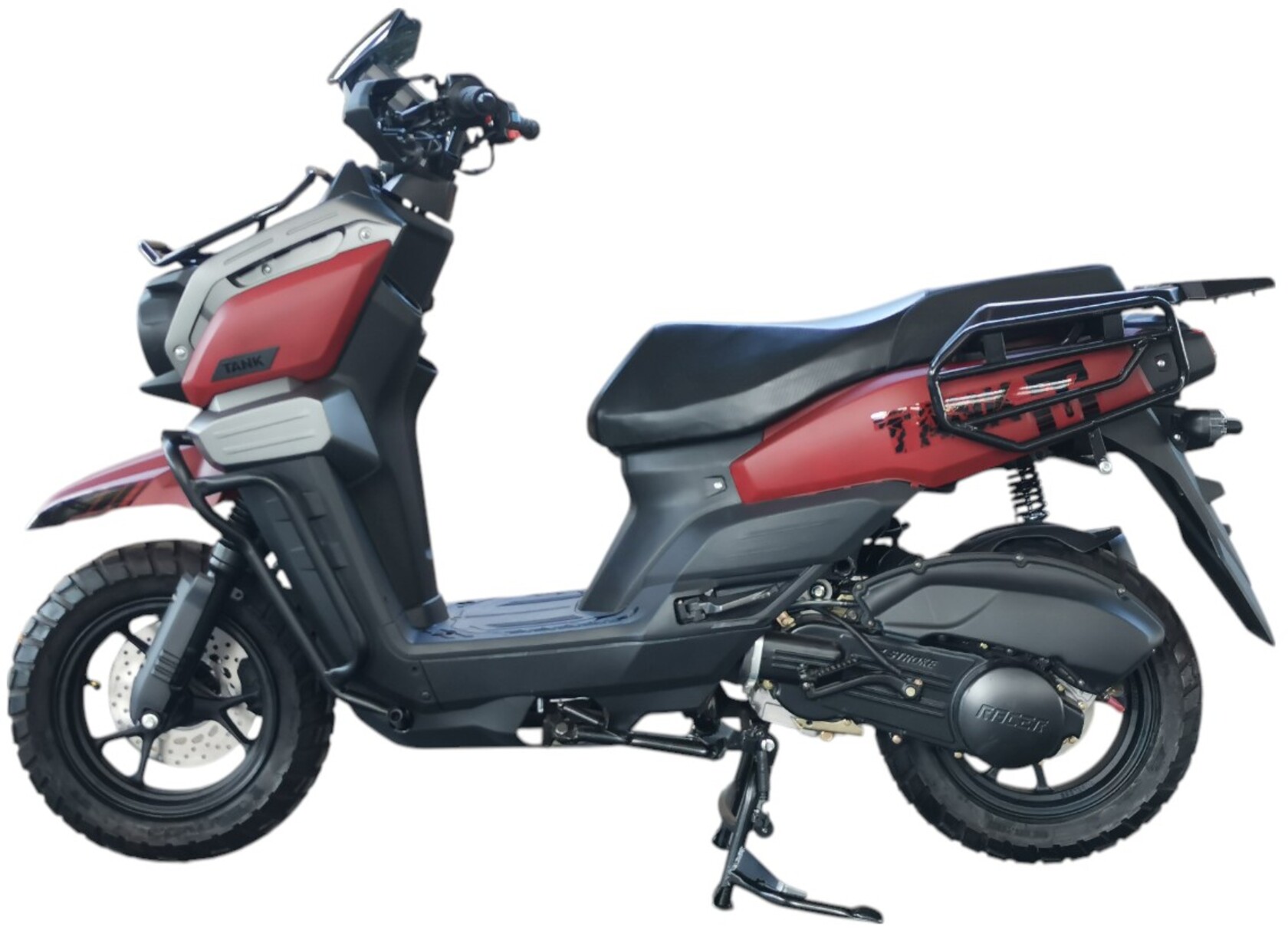 На скутере Racer RC150T-15A Tank установлен двигатель 4-х тактный двигатель. Легкий вес, большая грузоподъемность и отличная управляемость позволят легко маневрировать в густом городском потоке.Яркий и современный дизайн модели обязательно привлечет внимание. Благодаря высокому качеству сборки, этот скутер прослужит вам много лет. Усиленные задние амортизаторы обеспечивают комфортную поездку по проселочным дорогам, а карбюратор производства Тайвань отличается высоким качеством.Racer RC150T-15A Tank – это отличный выбор за разумные деньги, сочетающий практичность и доступную цену.Технические особенности модели: Одноцилиндровый четырехтактный двигатель с воздушным охлаждением. Электростартер и кикстартер. Тайваньский карбюратор Keihin. Передняя рычажная подвеска. Два гидравлических амортизатора сзади. Дисковые тормоза. Объем топливного бака 5 л. Расход топлива 3.2 л/100 км.Электромеханическая приборная панель. Замок зажигания, фары, стоп-сигнал, поворотники. Зеркала заднего вида, багажник, центральная подножка. Максимальная нагрузка до 150 кг. Подходит для пользователя ростом от 160 до 200 см.