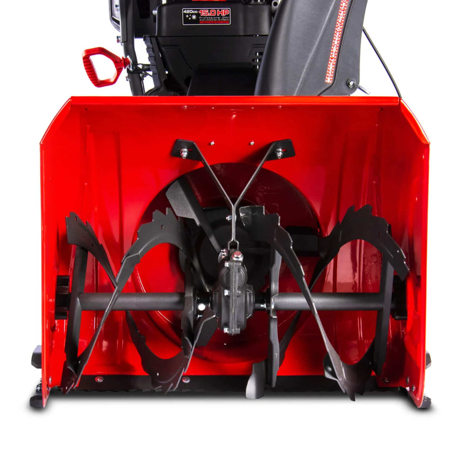 - Шнек с агрессивным профилем из высоколегированной стали. Децентрованный шнек имеет зубчатую режущую кромку, которая с лёгкостью разрубает слежавшийся снег и ледяной наст.