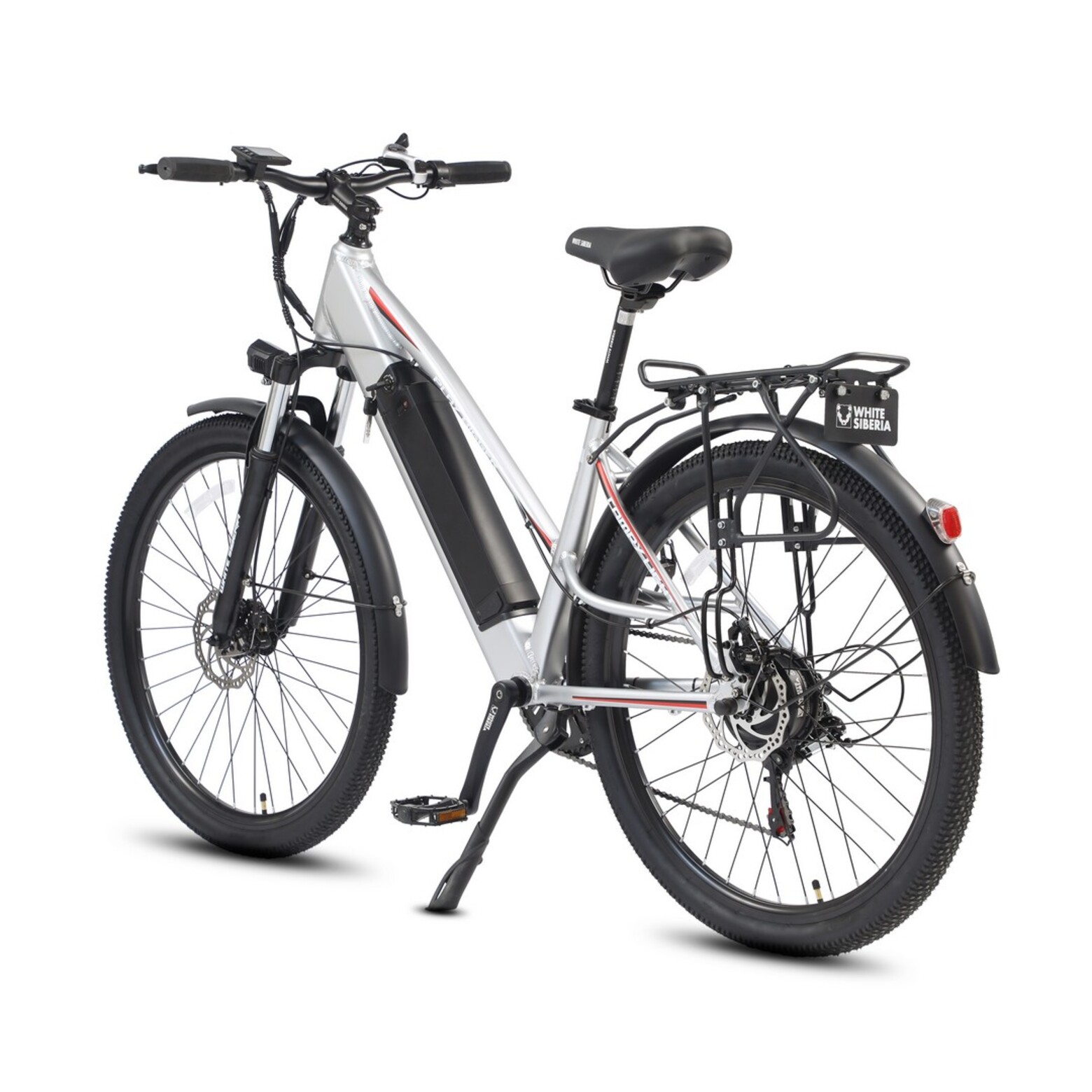 Электровелосипед WHITE SIBERIA CAMRY LIGHT 500WПрогулка на велосипеде - отличный способ отдохнуть в выходные! Но дальние поездки на велосипеде выматывают, изнуряют и потом нужен отдых от таких приключений... К счастью, есть способ сделать поездки в парк или пригород доступными каждому!Прогулочный электровелосипед CAMRY LIGHT 500W создан для неспешных и комфортных велопрогулок по дорогам российских городов и пригорода!Чем отличается CAMRY LIGHT от одноклассников?Мощный электромотор на 500W отлично помогает на подъёмах в горку и экономит ваши силы во время дальних поездок! Он позволит вам взглянуть по-новому на покатушки - даёт насладиться дорогой и красотами природы!Рама из авиационного алюминия с интегрированной легкосъёмной батареей на 36V 11A. Окрашена порошковой краской - надёжно защищена и красиво выглядит, благодаря 4 вариантам расцветки.Лёгкая, но прочная - велосипед в сборе весит всего 23 кг! Особая геометрия рамы с заниженной верхней трубой - благоприятно повлияла на удобство посадки, без ущерба для прочности конструкции. Вам не нужно высоко поднимать ногу чтобы сесть на велосипед!Колёса на 27,5 дюймов - отличное соотношение манёвренности и наката! А благодаря резине Kenda с универсальным рисунком протектора - ещё и отличное сцепление с различными типами дорожных покрытий.Металлические крылья на переднем и заднем колёсах полностью закрывают водителя от грязи, камней и брызг из-под колёс!Качественное навесное оборудование от фирмы SHIMANO, большой дисплей бортового компьютера с подсветкой, удобный лепесток газа, усиленный металлический багажник - всё это для вашего комфортного передвижения на комфортном и мягком сидении электровелосипеда CAMRY LIGHT 500W.Дисковые механические тормоза спереди и сзади - просты и надёжны.Электровелосипед CAMRY LIGHT - делает прогулки на велосипеде комфортными и доступными каждому!