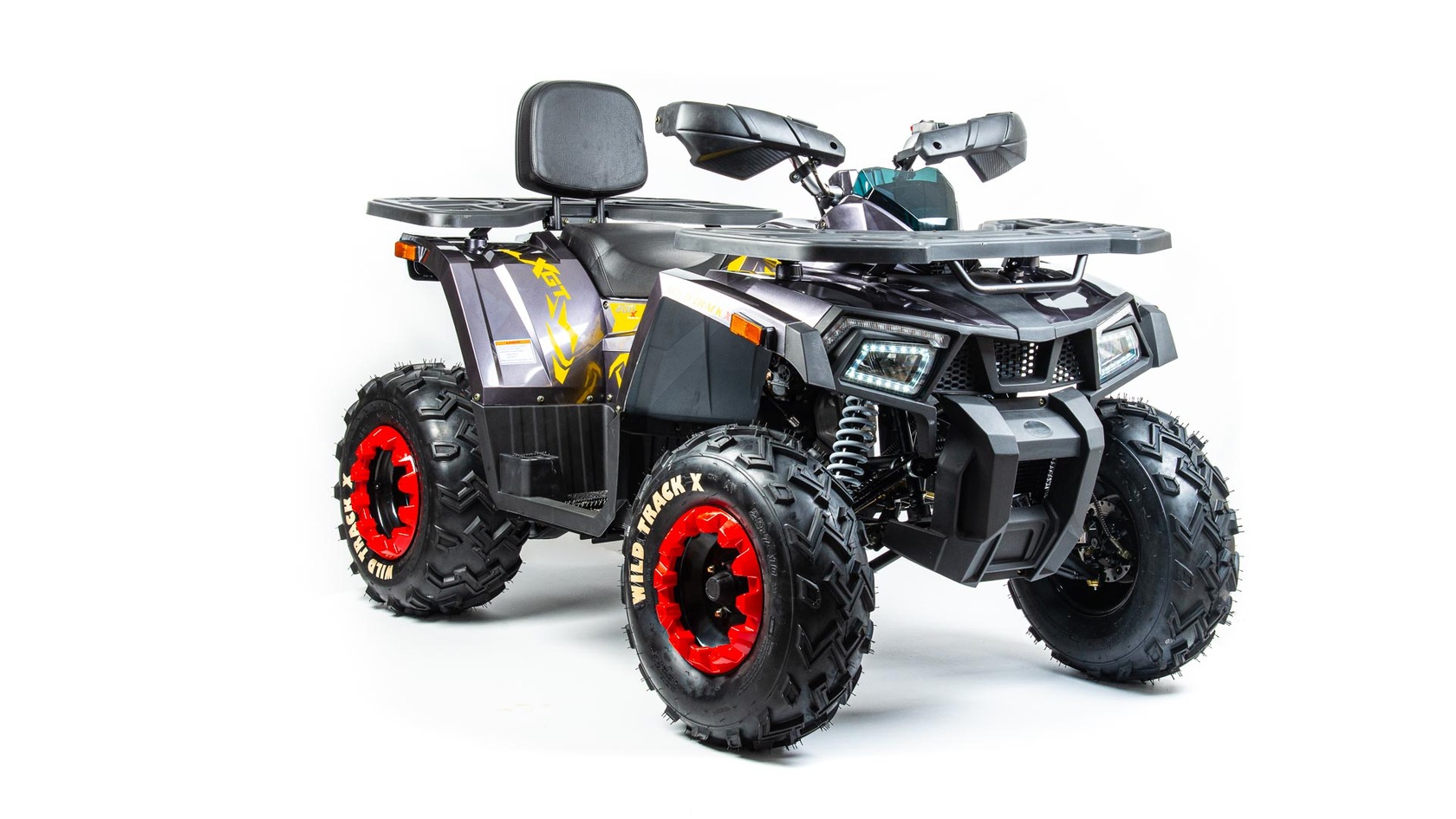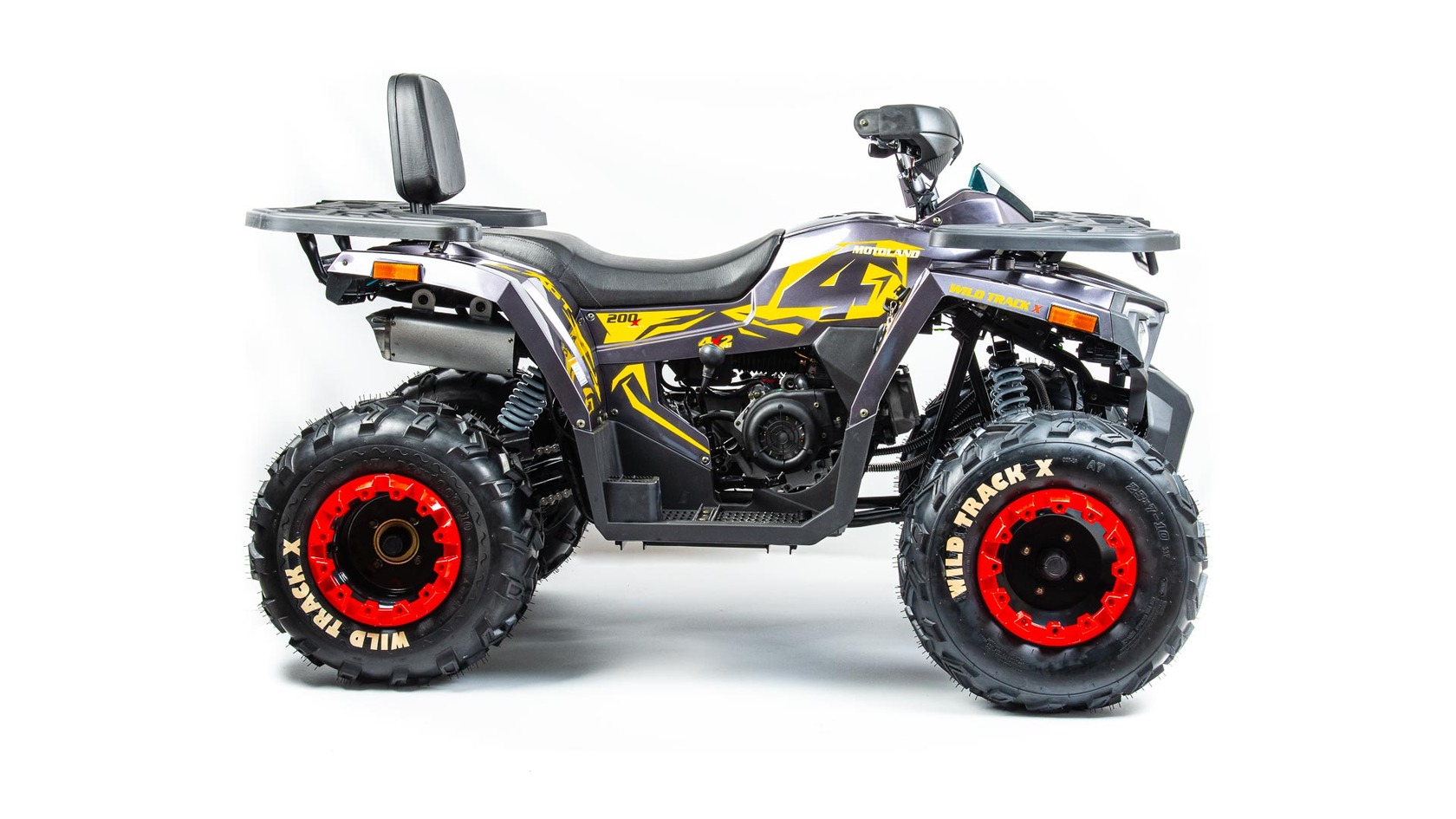 Motoland wild track X – сочетает в себе удобство ,простоту обслуживания и хорошую проходимость в самых разных условиях использования . Благодаря отлично настроенной подвеске управление и передвижение на нем становится очень комфортным. Все неровности и кочки, будут проглатываться без проблем, ведь на нем установлены колеса на 10 дюймов .Квадроцикл оснащен 161 QMK на 200 см3 двигателем c воздушно-масляным охлаждением и автоматической коробкой передач с реверсом , дисковыми тормозами, панелью приборов , линзованной оптикой с диодными ДХО , ручным стартером . Он отлично подойдет для семейных покатушек ,а также для рыбалки и охоты .Вы получите незабываемые впечатления от вождения .Данная комплектация поставляется почти собранная.