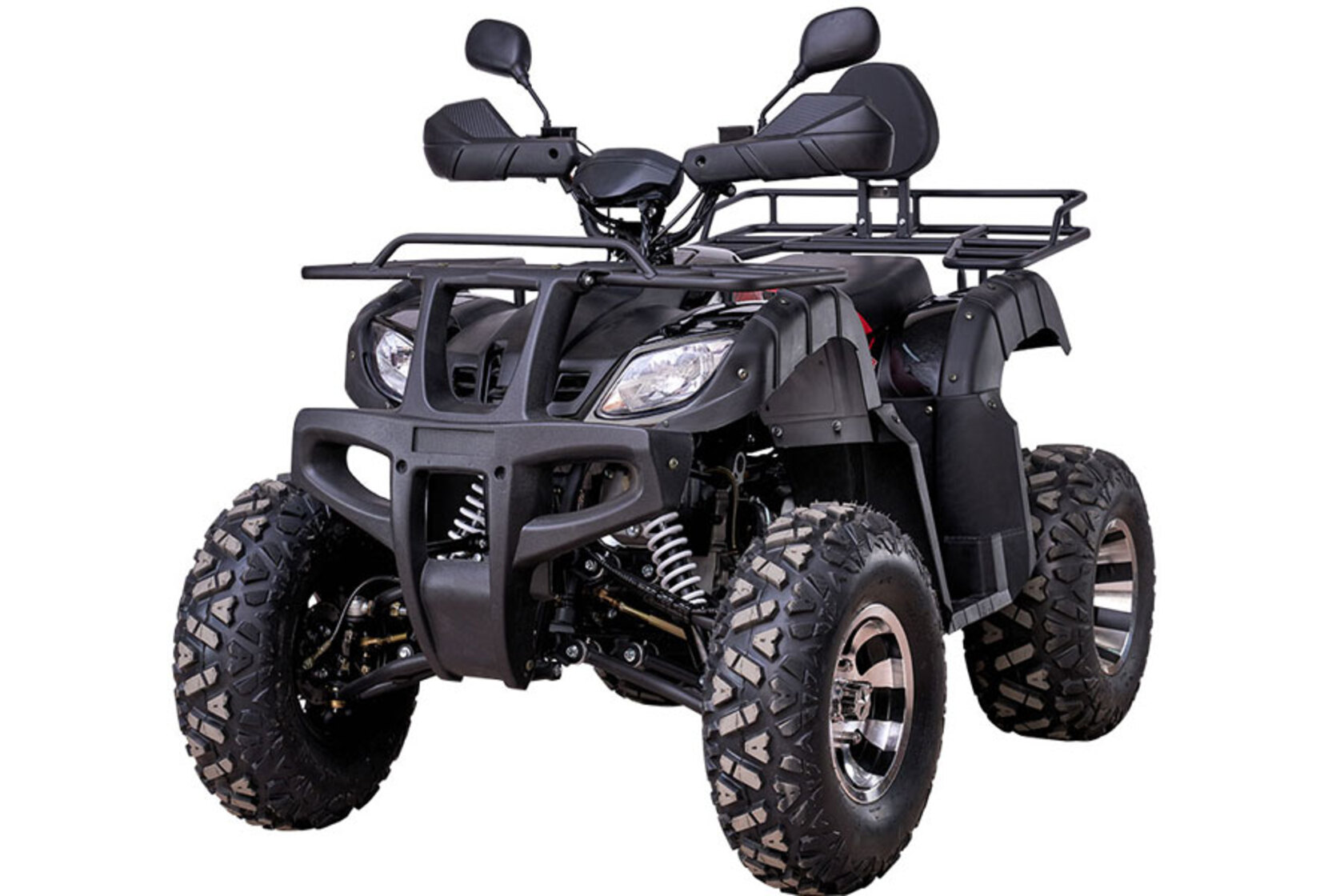 Максимальная нагрузка - до 160 кг. На квадроцикле 150 установлен передний и задний багажники, которые выдерживают нагрузку до 100кг каждый.