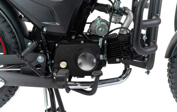 MotoLand Alpha RS 11 это продолжение легендарного и всеми любимого мопеда Alpha, внешний вид приобрел современную и эргономичную форму по пластику и обновленную приборную панель.Выпускается в трех цветах: красный, синий, черный.Мопед можно использовать для самых различных целей: для одиночного или совместного передвижения в городском потоке, сельской местности, поездки на природу, рыбалку и охоту.При этом он универсален и подходит мотолюбителям любого возраста и опыта вождения.Для подростков, подойдет как подарок и первый мотоцикл для только начинающего свое знакомство с миром мототехники.Для взрослых, которым нужна техника для поездок из точки А в точку Б и обратно, именно в таком режиме он способен показать себя с лучшей стороны.Мопед полностью отвечает требованиям к безопасному движению по городу и за городом: оснащен фарой дальнего и ближнего света, поворотниками, стоп-сигналом, звуковым сигналом, зеркалами заднего вида, габаритными светоотражателями.Для того чтобы ездить на мопеде, нет необходимости в регистрации в ГИБДД и страховке.Техническая сторонаМопед поставляется с 48 кубовым одноцилиндровым четырехтактным двигателем с воздушным охлаждением (1P39FMB). Установлен карбюратор PZ19.Двигатель работает ровно, имеет высокую мощность в широком диапазоне оборотов, что позволяет комфортно трогаться и быть уверенным, что двигатель не заглохнет в неподходящий момент.Двигатель имеет возможность легкого запуска с кнопки на руле, так как имеет электростартер, а при необходимости можно воспользоваться кикстартером.Механическая трансмиссия содержит 4 передачи.Мопед имеет хорошую динамику разгона, расход 3 л на 100 км, объем бака 7л., которого хватит на 200+ км.