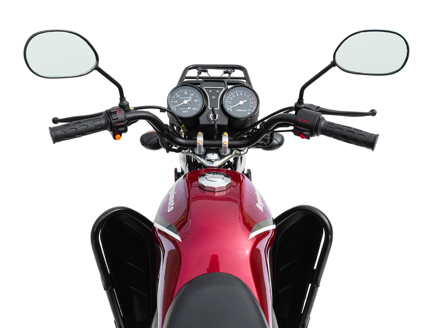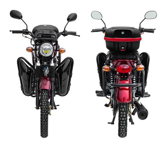 Представляем вниманию поклонников классической мототехники Regulmoto Alpha (RM-2) – обновленную версию популярного мопеда, которая отличается интересной комплектацией и расширенными возможностями повседневного использования. Данная модель отличается продуманной комплектацией, призванной повысить комфорт владельца мопеда и расширить эксплуатационный потенциал техники. Силовой агрегат – одноцилиндровый 4-тактник «кабовского» типа с увеличенным рабочим объемом. Новая ЦПГ устанавливается на производстве заводом-изготовителем и позволяет существенно поднять показатели производительности этого очень надежного и экономичного мотора. Прирост максимальной мощности двигателя также сказывается на скоростных характеристиках мопеда и удобстве управления транспортным средством.За комфорт передвижения по отечественным дорогам отвечают телескопическая вилка спереди и новые парные амортизаторы задней подвески, у которых можно настраивать жесткость пружины в зависимости от нагрузки на заднее колесо. Вопрос безопасности эксплуатации решают надежные барабанные тормоза в ступицах переднего и заднего колеса.Современный привлекательный дизайн мопеда Альфа дополняют такие актуальные решения как цельнолитые диски колес, светодиодные лампы фары головного света, а также организация дополнительного пространства для перевозки различных грузов. Последнему вопросу на Regulmoto Alpha (RM-2) уделено достаточно много внимания: сзади мопед оснащается багажным кофром и складывающимися багажными площадками, спереди над фарой закреплена багажная площадка, на защитных дугах установлены пластиковые бардачки.