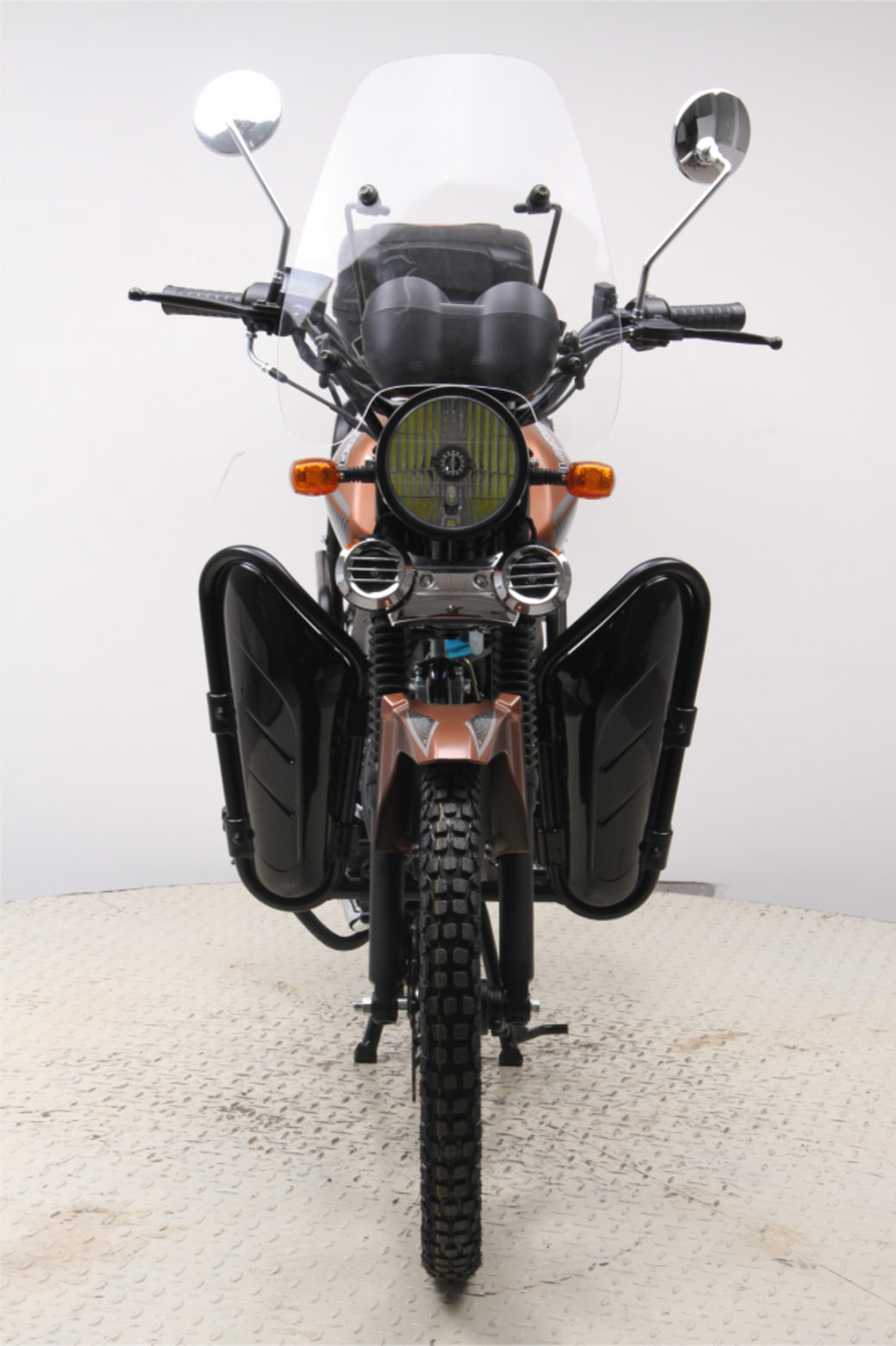 Мопед VIPER 125. Двигатель 125 куб.воздушное охлаждение,новый дизайн модель 2022 года, увеличенный топливный бак, новый элеткромеханический щиток приборов,Тормоза перед диск,зад барабан. Диодная фара головного света, диодный задний фонарь и повороты,Шина перед 2,50/17, Шина зад 2,75/17, дополнительные карманы на передней дуге,Кофр, ветровое стекло.