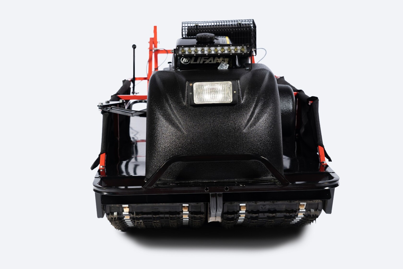 Мотобуксировщик Бурлак Экспедитор с возможностью всесезонного использования* Две гусеницы шириной 38см каждая обеспечивают высокую проходимость по любым видам покрытий. Подвеска унифицирована: зимой рекомендуется использование снегоходных тележек (катковая подвеска), летом и в межсезонье идеально работает пневмоподвеска.Данная модель управляется так же, как и любой классический мотобуксировщик, - при помощи складного руля, стоя либо сидя в волокушах зимой и в прицепе летом. Таким образом, нет необходимости ставить данную технику на учет и получать права на управление. Для зимы также разработан толкач для комфортной езды по глубокому снегу.Базовая модель комплектуется двигателем Lifan мощностью 15 либо 17 л.с. с катушкой 3А и регулятором напряжения, коробкой реверса, тормозом.Максимальная комплектация мотобуксировщика Бурлак Экспедитор поставляется с двигателем Lifan мощностью 17 либо 18.5 л.с. с катушкой 7А и регулятором напряжения, коробкой реверса, тормозом, а также включает подогрев ручек руля и курка газа, дополнительный источник освещения в виде светодиодной балки и дополнительную розетку.*Для всесезонного использования рекомендуется приобрести оба варианта подвески. Пневмоколеса не рекомендуется эксплуатировать при минусовых температурах.
