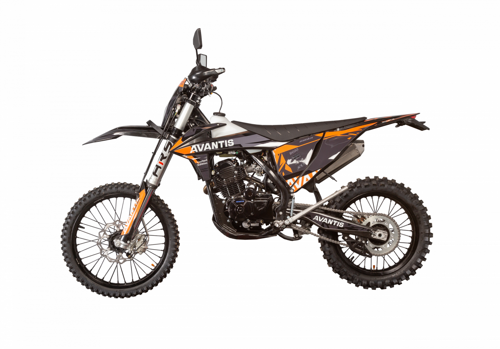 Avantis Enduro 250 EFI Exclusive ARS — одна из главных новинок весны 2022 года. Это мотоцикл, в котором объединены комфорт, производительность и спортивные характеристики. Главным преимуществом модели является универсальность, которая складывается из производительного мотора с инжектором, продуманной геометрии и функционального тюнинга.Этот мотоцикл создан для спорта и эксплуатации в жестких условиях: все задействованные комплектующие имеют топовое качество и являются лучшими в своем классе. Да, это напрямую повлияло на цену, однако каждый потраченный рубль себя полностью оправдает. Это полноразмерный взрослый эндуро с соответствующими габаритами. Высота по седлу составляет 960 мм, поэтому на нем будет комфортно опытным райдерам с ростом выше 170 см — либо тем, кто умеет ловко запрыгивать на сидение с подножки. Это, пожалуй, единственное ограничение модели, так как в остальных аспектах Avantis Enduro 250 EFI Exclusive ARS не предъявляет к владельцу жестких требований: ни по весу, ни по уровню навыков.Несмотря на то, что Avantis Enduro — это спортивная серия соревновательного уровня, новая модель максимально дружелюбна даже к новичкам. Avantis Enduro 250 EFI Exclusive ARS легкий, отлично управляется и ловко маневрирует: как по городскому трафику, так и на бездорожье. Фирменная подвеска ARS без проблем справляется с неровностями рельефа и эффективно отрабатывает даже резкие приземления.База по осям 1500 мм в паре с дорожным просветом в 310 мм позволяет уверенно преодолевать препятствия, будь то высокие камни с валунами на пересеченке либо высокий бордюр в городе.На мотоцикле установлена однокартриджная подвеска ARS. Энергоемкая и длинноходная, она уже зарекомендовала себя на топовых мотоциклах Avantis и была неоднократно проверена на качество в самых жестких условиях.Спереди находится телескопическая вилка-перевертыш: рабочий ход 300 мм, диаметр пера 48 мм, длина пера 940 мм. На штоках с завода установлена пластиковая защита. Задняя подвеска — маятниковая: с моноамортизатором, алюминиевыми рычагами прогрессии на игольчатых подшипниках. Окрашенный маятник, как и во всей серии Enduro, полый и литой, что обеспечивает его солидный ресурс. При необходимости подвеска регулируется на сжатие, отбой и преднатяг пружины.В качестве базы для колес задействованы прочные и легкие обода от Unison, сделанные из алюминия. Покрышки — YangXing с агрессивными шашками и отличным зацепом, с завода укомплектованные буксаторами. Рисунок протектора позволяет уверенно проехать по маршруту практически любого уровня сложности, а ресурса комплекта хватит не на один сезон. Размерность колес наиболее популярная, 21” спереди и 18” сзади.Avantis Enduro 250 EFI Exclusive ARS является первым в России мотоциклом, оснащенным двигателем 172FMM-5 с воздушным охлаждением и инжектором. Такая комбинация позволила добиться уверенного подрыва и хорошей динамики во всем рабочем диапазоне. Кроме того, данное решение существенно снизило расход топлива — как во время интенсивных тренировок на бездорожье, так и во время поездок по городу.С одной стороны, двигатель 172FMM-5 уже задействован на других мотоциклах Avantis: например, им комплектуются модели А6, А7 и новинка А8. Однако наличие инжектора и топовая комплектация делают Avantis Enduro 250 EFI Exclusive ARS неоспоримым победителем в любых сравнениях.Мощность мотоцикла (при замере с коленчатого вала) составляет 25 лошадиных с