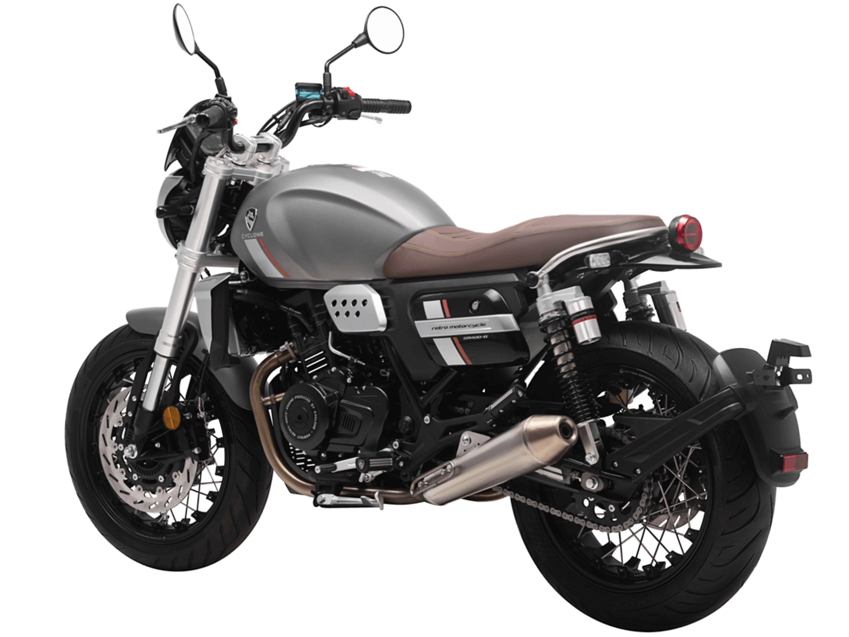 CYCLONE RE401 (SR400-B) 2024 – классик, в котором подчёркнутая простота объединяется с современными технологиями. Данная модель является более продвинутой версией модели RE3 (SR-400) – мотоцикл обладает более современным дизайном, снабжён стильными металлическими накладками на радиатор, а также топливным баком, объём которого увеличен до 20 литров.Двухцилиндровый четырёхтактный двигатель объёмом 401 см3 выдаёт 43 л.с. на 9500 об/мин. Инжекторный впрыск топлива с инжектором BOSCH увеличивает топливную экономичность, а также позволяет добиться высокой приёмистости и неприхотливости агрегата. Жидкостная система охлаждения не допустит перегрева двигателя даже при самом агрессивном вождении. На мотоцикл установлена 6-ступенчатая механическая коробка передач.Максимальная скорость мотоцикла составляет 150 км/ч.RE401 оснащён классическими спицованными колёсами диаметром 17 дюймов. Колёса обуты в бескамерные покрышки TIMSUN. С неровностями дороги эффективно справляются телескопическая вилка перевёрнутого типа спереди и маятник с двумя амортизаторами сзади. Ход передней подвески составляет 130 мм, задней – 81 мм. Оба компонента подвески являются регулируемыми. Эффективное и безопасное замедление с любых скоростей обеспечивают гидравлические дисковые тормоза с ABS спереди и сзади.Клиренс мотоцикла составляет 170 мм. Объём топливного бака – 20 л. Снаряжённая масса – 186 кг.Из дополнительного оборудования можно выделить USB-порт и датчики давления в шинах.Мотоцикл сочетает в себе отличные технические характеристики, комфорт и надёжность, что позволяет вам ощутить настоящую свободу на любой дороге.