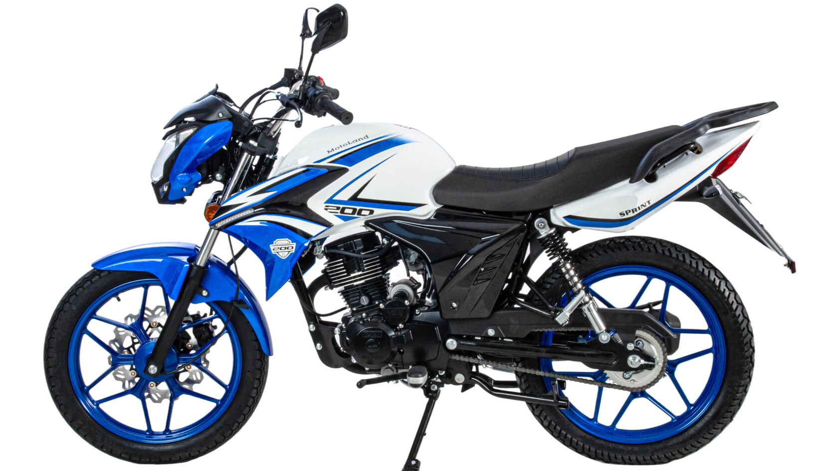 MOTOLAND SPRINT 200 - отличный вариант байка для тех, кто только решил приобщиться к мотокультуре и пересесть на двухколесную технику основательно, ведь он небольшого размера и легкий.Данный мотоцикл зачастую используется в автошколах для обучения учеников, ведь научиться водить на нем проще простого.Расход топлива 3,7л. на 100км.Мотоцикл оснащен бензиновым 200-кубовым двигателем 164FML с балансиром ,карбюраторной системой питания PZ30. Охлаждается движок воздушным путем. Механическая коробка передач пятиступенчатая. Для запуска двигателя имеется как кикстартер, так и электростартер.Работа подвески мотоцикла организована на базе стандартных компонентов: передней телескопической вилки и двух задних амортизаторов.Размер колес 18/18. Колесные диски литые