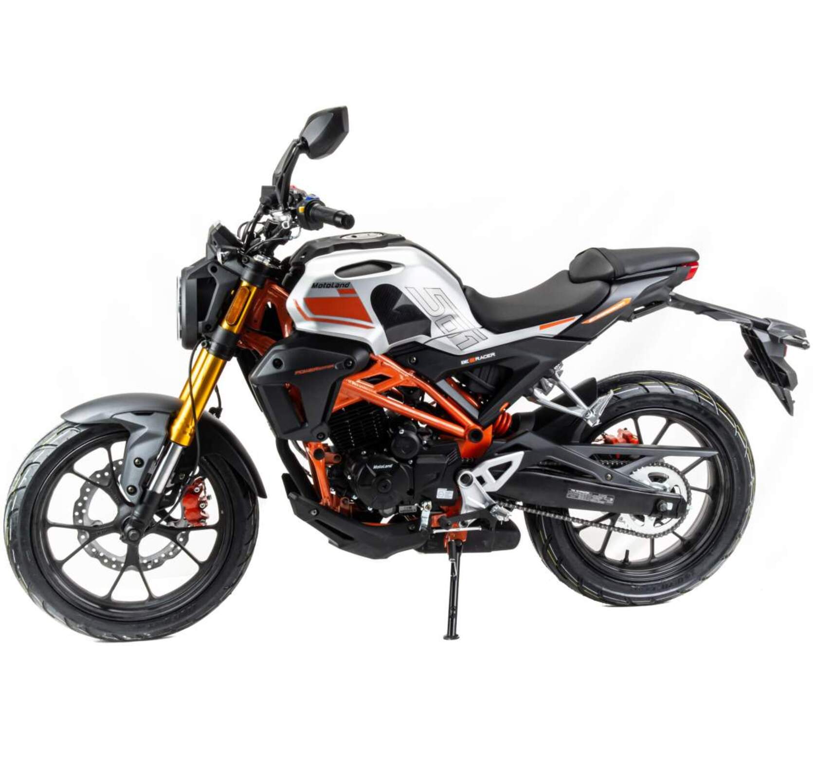Новинка 2023 года MOTOLAND 250 501!!!Представляем Вашему вниманию дорожный мотоцикл на пятискоростном двигателе 172 FMM-5 (PR250 с балансиром) , с масляным и воздушным радиаторами, кикстартером и электростартером, мощностью 21 л.с. На двигателе установлен карбюратор Keihin PZ 30.Также на новинке установлены передние тормоза с увеличенными тормозными дисками , литые алюминиевые обода , передняя вилка перевёрнутого типа с большим ходом, которая обеспечивает отличную управляемось для комфортного передвижения.Современный дизайн мотоцикла разработан с учетом всех последних новшеств.428H цепь в сочетании с хорошо подобранными звездами, обеспечивает отличную динамику.Хорошо подобранные покрышки на 17" ободах, 110/70 и140/70, обеспечивают отличное сцепление с дорожным покрытием.Рама скелетная. Удобное кожаное сиденье и жидкокристаллическая панель приборов с подсветкой - заставят радоваться комфорту и удобству.Световое оборудование на экономичных и долговечных светодиодах