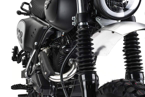 Представляем Вашему вниманию ЭКСКЛЮЗИВНУЮ НОВИНКУ 2023 года – мотоцикл двойного назначения LEGEND 250!LEGEND 250 – является стильным мотоциклом с достойными характеристиками в бюджетной категории. Дизайн мотоцикла выполнен в гоночном ретро стиле, укомплектованный современной LED оптикой, приборной панелью, титановым выхлопом, креплением номерного знака и прочими канонами современности.Низовой покладистый мотор, классическая посадка, мягкое рифлёное сидение и спицованные колеса – всё это способствует комфортному управлению по асфальтированным дорогам и пересеченной местности.LEGEND 250 был спроектирован как универсальный мотоцикл, для райдеров любых возрастов. На нём будет комфортно в городе, посёлке, деревне, поле и даже в лесу.Мотоцикл оснащен двигателем 172FMM-5 (баланс. вал) с 5 ступенчатой коробкой передач, мощностью 21 л.с. или же 15,4 кВт/8800 RPM. Впуск оснащен карбюратором Keihin PZ30, выпуск – титановым выхлопом от Motoland.Установлена металлическая защита картера, алюминиевые крылья и защита цепи, усиленный толстостенный руль и усиленная 520 цепь.Ходовая часть состоит из телескопической длинноходной вилки диаметров 37 мм и задним моноамортизатором.Покрышки шириной 4.1 и 4.6 дюйма (обод перед. 78мм - 110/90/18 и бод задний 98мм - 120/90/17) с универсальным рисунком протектора (высота шашки 11 мм) установлены на прочных металлических ободах с алюмин. ступицами. Такое сочетание позволяет быть уверенным в хорошем сцеплении с дорогой.Передний увеличенный тормозной диск в сочетании с качественной тормозной системой позволяет максимально уменьшить тормозной путь.Топливный бак в 11 литров и экономичный мотор с расходом в 2,5 л./100км. Позволяют проезжать более 400 километров без дозаправки.