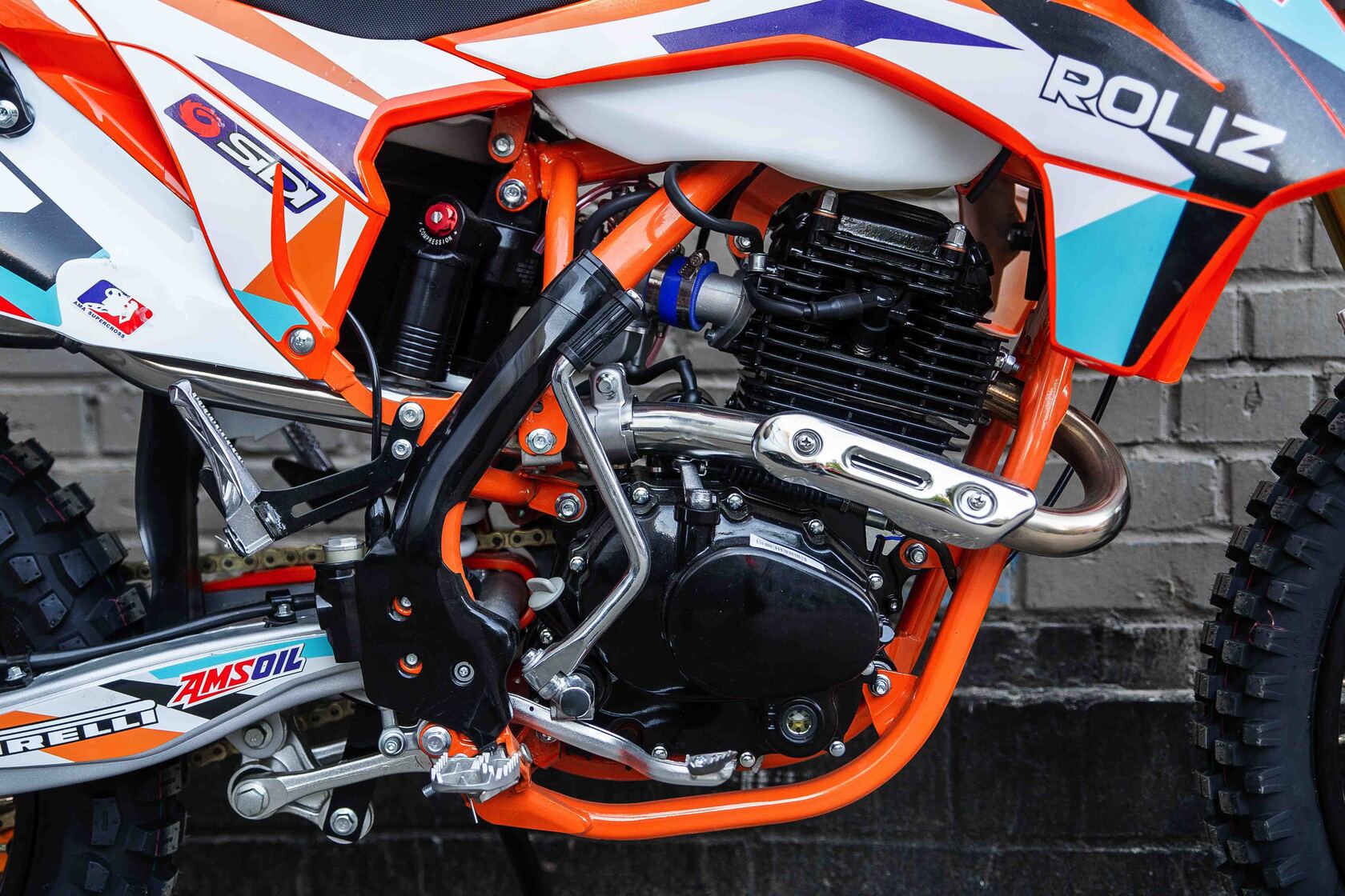 Эконика SPORT-007 – новый внедорожный мотоцикл. Его стоимость значительно ниже брендовых моделей со схожими характеристиками, но качество сборки в целом, как и отдельных деталей, отличное.В стальной раме с баком 6,5 литров установлен четырехтактный одноцилиндровый двигатель Zongshen 172FMM-3A мощностью 21 л.с, с механической коробкой передач и воздушным охлаждением. Мотоциклы оснащаются вакуумными карбюраторами. Для удобства запуска мотора предусмотрен электростартер.Мотоцикл оснащен фарой головного света, что является необходимым условием для езды в сумерках и темноте, и LED указатели поворота.У нас Вы можете купить этот мотоцикл с бесплатной доставкой по РФ и гарантией до года. Также его можно приобрести в рассрочку или в кредит.