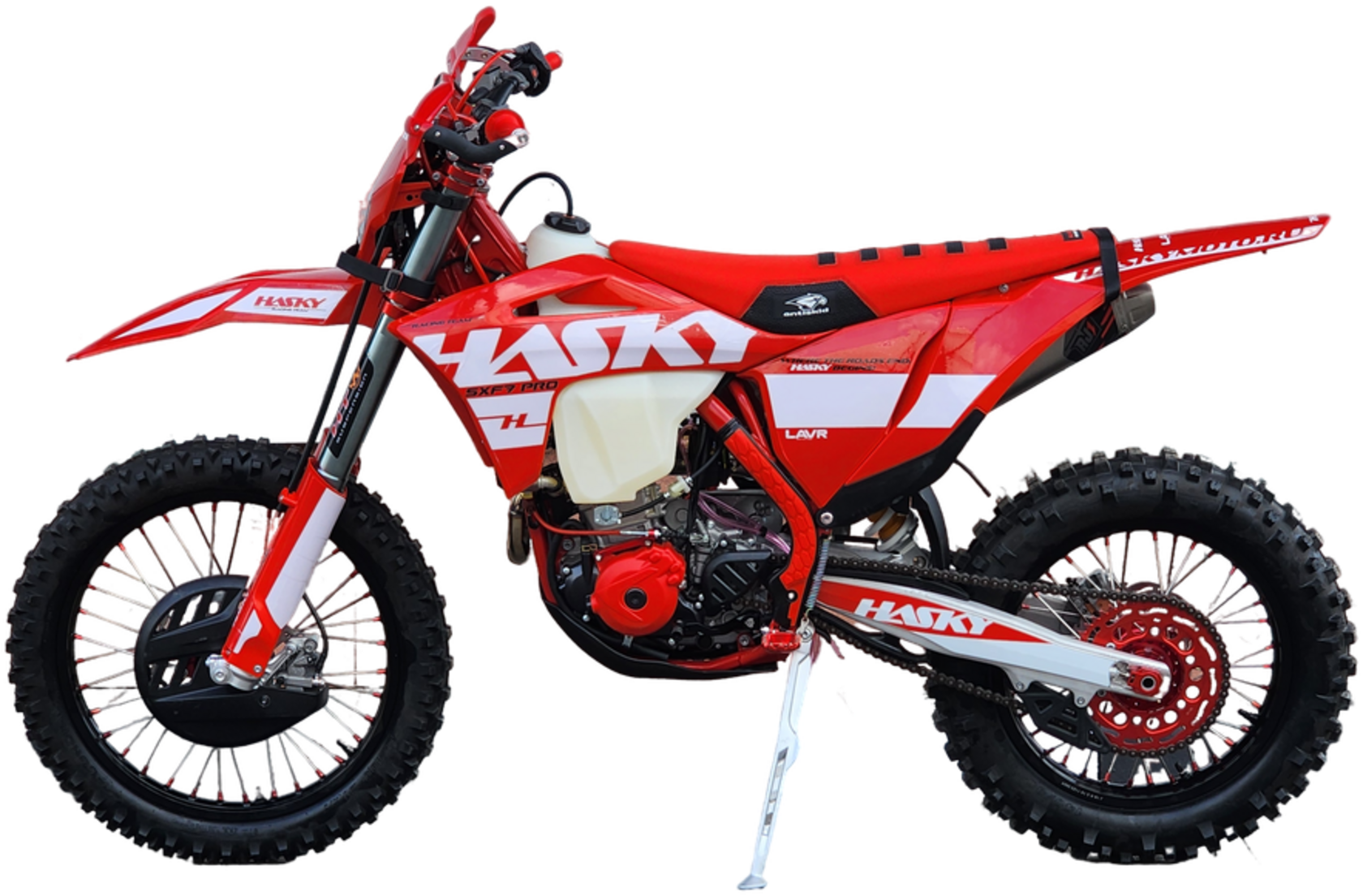 Hasky F7 PRO 177MM 2025 – обновленная классика эндуро с премиальными характеристикамиЭтот полноразмерный мотоцикл на колесах 21/18 дюймов представляет собой современную интерпретацию классического эндуро, сочетающую проверенные решения и инновационные технологии. В основе модели лежит мощный двигатель ZS 177MM NC298 с балансирным валом, развивающий 31 л.с. и оснащенный 5-ступенчатой коробкой передач. Двойная система запуска (кик-стартер и электростартер) обеспечивает надежность в любых условиях, а карбюратор Nibbi PWK 34 Black гарантирует стабильную работу силового агрегата.Подвеска HTW T9 с 48-миллиметровыми вилками закрытого картриджа (со всеми регулировками) и алюминиевым маятником обеспечивает превосходную управляемость на сложных трассах. Траверсы CNC AJ1 двойного охвата и 360-градусная защита перьев вилки демонстрируют продуманность конструкции.Тормозная система AJ1 (аналог Brembo) в сочетании с алюминиевыми ободами KKE, фрезерованными ступицами и подшипниками NSK обеспечивает уверенное торможение. Эргономика продумана до мелочей: усиленный руль из сплава 7075, грипсы AJ1 Lock On, антискользящее сиденье, пульты KTM и широкие подножки AJ1 создают комфортные условия для райдера.Комплексная защита включает элементы OTOM для двигателя, радиатора, рамы и тормозного диска, дополненные буксировочными стропами. Колеса с покрышками Cordial (18" заднее, 21" переднее) оснащены 3-миллиметровыми камерами и фиксаторами AJ1.Дополнительные преимущества: негорючий воздушный фильтр увеличенной площади, полностью влагозащищенная проводка, светодиодная фара с 4 линзами и комплект инструментов.