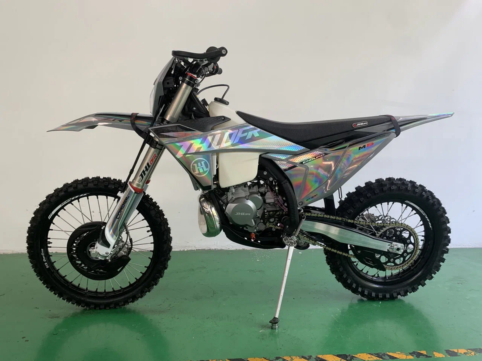Мотоцикл JHL M6 — это современный и универсальный внедорожный мотоцикл, который сочетает в себе мощь, надежность и стильный дизайн. Он создан для любителей активного отдыха, экстремальных поездок по бездорожью и тех, кто ценит свободу передвижения. JHL M6 станет отличным выбором как для начинающих, так и для опытных райдеров, которые ищут качественный и доступный мотоцикл для покорения сложных трасс.Основные характеристики:Двигатель: Мощный 2-тактный одноцилиндровый двигатель объемом 300 куб. см с воздушным охлаждением. Он обеспечивает стабильную работу в любых условиях и достаточную мощность для преодоления сложных участков.Трансмиссия: 5-ступенчатая механическая коробка передач, которая позволяет легко управлять мотоциклом как на бездорожье, так и на ровных трассах.Подвеска: Длинноходная передняя вилка и задний моноамортизатор обеспечивают комфорт и устойчивость на неровных поверхностях, поглощая удары и вибрации.Тормоза: Дисковые тормоза на обоих колесах гарантируют надежное и эффективное торможение даже в сложных условиях.Колеса: Прочные спицованные колеса с внедорожными покрышками обеспечивают отличное сцепление с грунтом, песком, грязью и другими типами поверхностей.Дизайн: Агрессивный и современный внешний вид с защитными элементами, такими как дуги, пластиковые крылья и прочная рама, подчеркивает спортивный характер мотоцикла.Вес: Легкая конструкция (около 120-130 кг) делает мотоцикл маневренным и простым в управлении.:Идеален для езды по бездорожью, лесам, горам и другим сложным ландшафтам.Простота в обслуживании благодаря надежной конструкции и доступным запчастям.Универсальность: подходит как для активного отдыха, так и для тренировок или соревнований.JHL M6 — это отличный выбор для тех, кто ищет надежный и недорогой внедорожный мотоцикл. Он подойдет как для новичков, так и для опытных райдеров, которые хотят покорять бездорожье, участвовать в мотокроссах или просто наслаждаться активным отдыхом на природе.