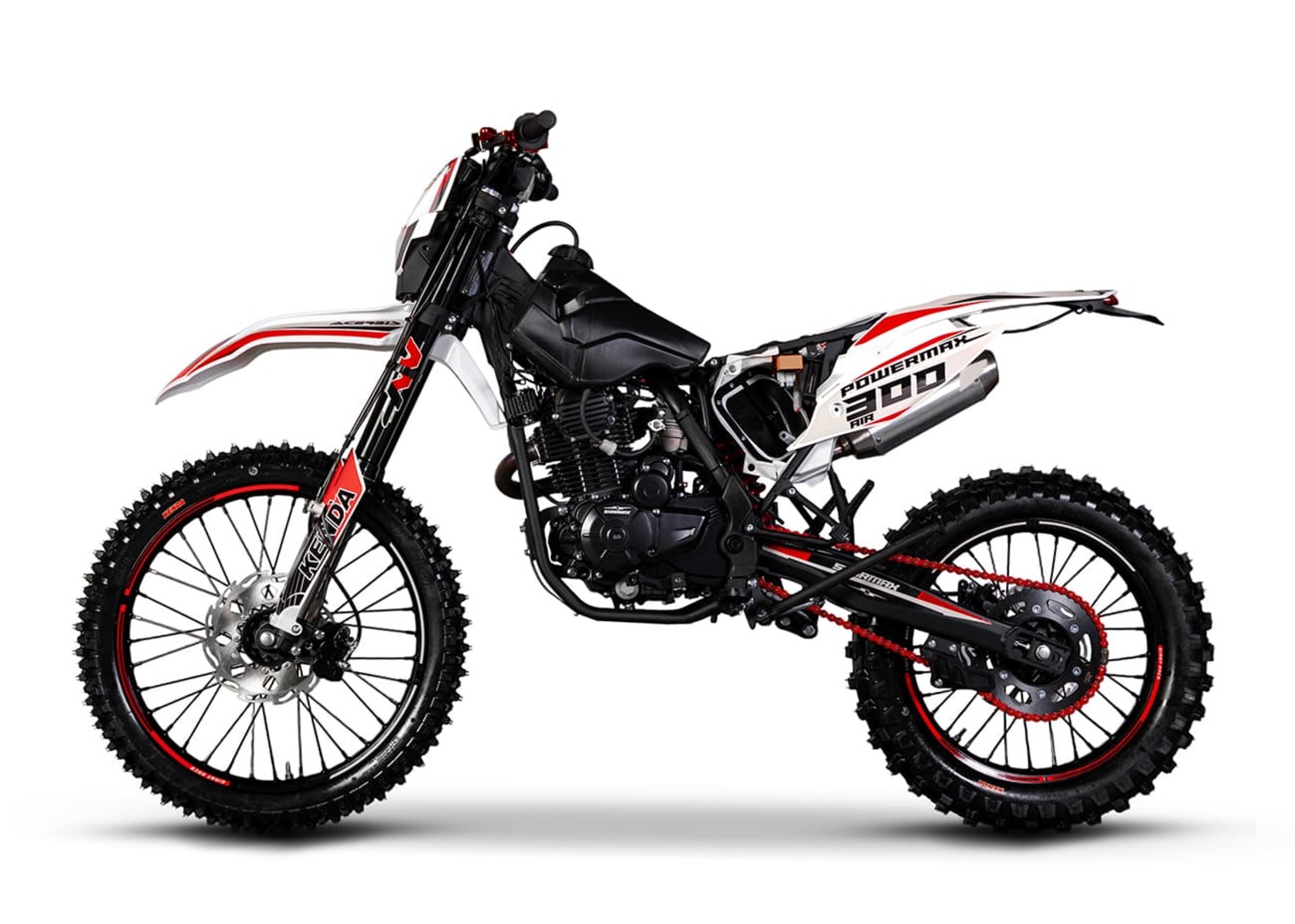 На мотоциклах серии Powermax установлены рама и детали премиального качества. Подвеска имеет несколько степеней настройки заднего амортизатора и передней вилки и может регулироваться в зависимости от ваших задач. Двигатель всё также от Zongshen, модификации меняются в зависимости от модели. Резина Kenda — лучшее, что можно представить на эндуро-байке. Мотоциклы этой серии отличаются большим ресурсом работы, а комплектующие на них имеют увеличенный запас прочности. Больших сложностей с ТО на байках серии Powermax также не возникнет благодаря качеству сборки и деталей.Завершение трилогии мотоциклов с воздушным охлаждением от компании Sharmax Motors. Sharmax Powermax 300 Air — один из самых крепких и надёжных байков на рынке. Отзывчивый и быстрый, мотоцикл Powermax 300 Air подарит ощущение превосходства на любой трассе. Премиальное качество и проверенные технологии легли в основу этой новинки сезона 2024-25. Мотоцикл Sharmax Powermax 300 Air был создан для тех, кто не боится добиваться новых вершин.Идеально сбалансированный двигатель 175 FMN-6 с балансировочным валом будто был создан для этого байка. Увеличенный объём 300 куб. см и мощность 27 л.с. — более чем достаточно для быстрого старта. Этот силовой агрегат сделан, чтобы показать оптимальное сочетание полезной мощности и низкого веса.6-ступенчатая коробка передач с шестернями из высокопрочного кованого металла почти не изнашивается с течением времени. Большинство подобных моделей оснащены 5-ступенчатой коробкой, в то время как Sharmax Powermax 300 Air даёт вам конкурентное преимущество.Nibbi PE 30 — один из лучших в своём классе. Карбюратор от легендарного американского бренда, установленный на десятках эндуро-байков во всём мире. Лёгкий старт, отсутствие провалов в работе двигателя и максимальная отдача мощности — всё это обеспечит Nibbi PE 30.Эргономичную подвеску можно настроить под любой стиль езды и вес райдера. Передняя вилка имеет регулировки демпфирования и отбоя. Задний амортизатор — регулировки демпфирования, отбоя, а также преднатяга пружины.Симметричная дуплексная рама из хромомолибденовой стали, позаимствованная у профессиональных гоночных байков, обеспечит оптимальную жёсткость и отзывчивость. Благодаря такой форме гонщик и байк становятся одним целым, с лёгкостью преодолевая любые барьеры.Руль на мотоцикле Sharmax Motors Powermax 300 Air изготовлен из прочного облегчённого алюминиевого сплава по технологии двойного сечения FATBAR. Цепкие грипсы позволяют кистям рук меньше уставать и дозировать открытие заслонки карбюратора максимально точно. Откидывающиеся ручки-неломайки станут приятным бонусом на самых хардовых маршрутах.Шины Kenda (21/18) буквально вгрызаются в грунт, на оставляя шансов соперникам на виражах. Агрессивный рисунок протектора и обеспечит идеальную проходимость на сложных участках. От грязи вас защитит прочный брызговик со стоп-сигналом.