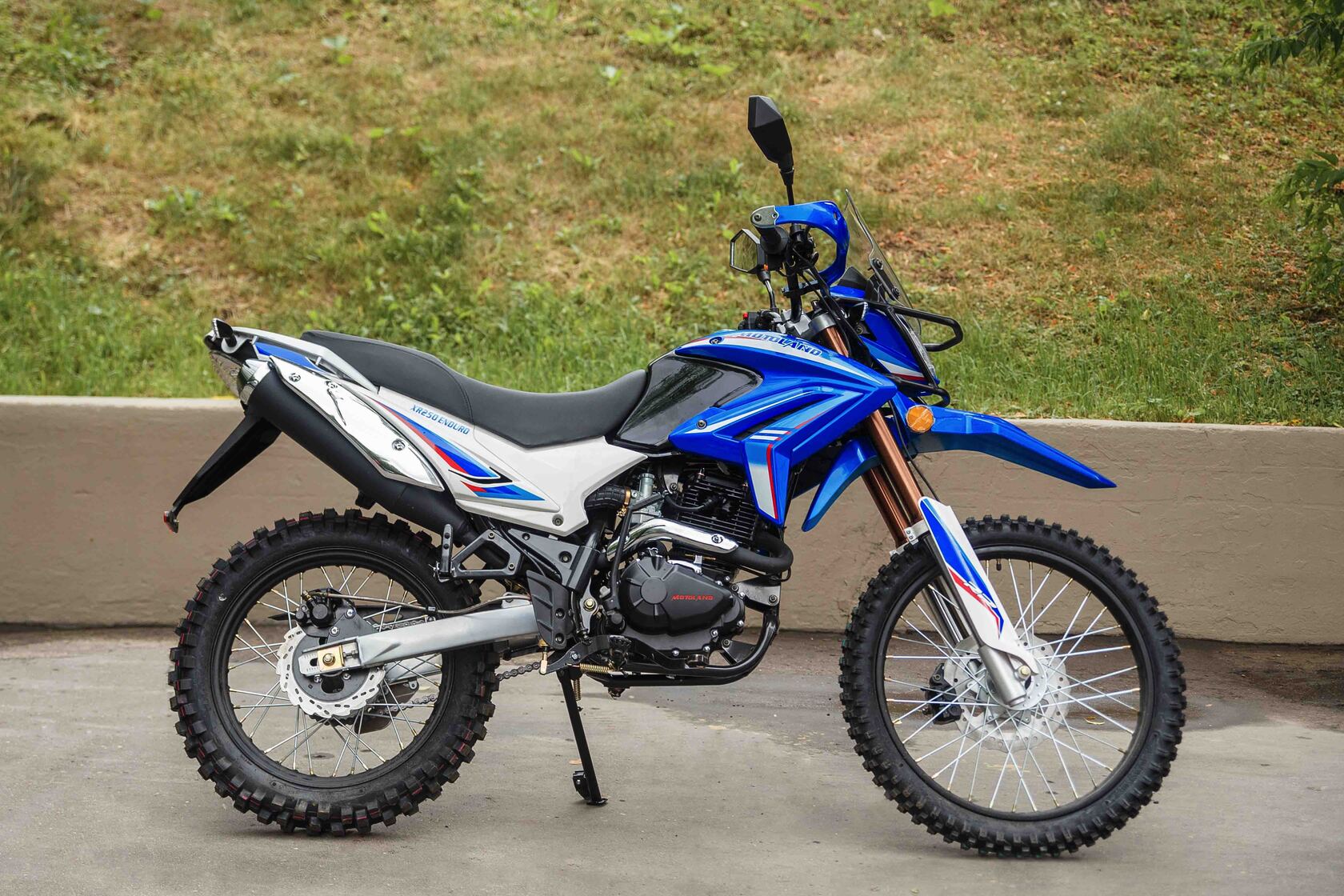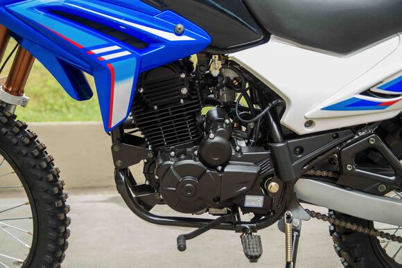 Обновленный мотоцикл Motoland XR250 ENDURO (172FMM-PR) предназначен для езды по бездорожью, эндуро соревнований, подходит для города, шоссейных и сельских дорог.. Motoland XR250 ENDURO (172FMM) отличаются высокой проходимостью, отлично ведут себя на мягком грунте и песке, легко преодолевают препятствия. Спортивный характер XR250 ENDURO (172FMM) подчёркивается современным дизайном. Классическая конструкция акцентирует внимание на сильных сторонах мотоцикла, которому не страшны грязь, брёвна, камни и другие преграды. Мотолэнд XR250 ENDURO (172FMM) весит 130 кг и подходит для пользователей любого роста, хорошо держит баланс и позволяет уверенно сохранять равновесие даже на сложных участках эндуро трасс. Колёса спицованные, сделаны из алюминия. Размер переднего колеса — 21 дюйм (530 мм), заднего — 18 дюймов (450 мм). Передние и задние тормоза дисковые. Покрышки с крупными шипами подходят для бездорожья, лесных дорог, песка и мягкого грунта. При этом купить мотоцикл Эндуро можно не только для соревнований, но и для езды по трассе и городу. Передняя вилка — перевёрнутая телескопического типа, дополнительно защищена жёстким пластиком. Задняя подвеска с моноамортизатором. Руль Эндуро усилен пластиковыми рамками, которые защищают руки гонщика от веток и травм при падениях. Приборная панель оснащена ЖК-экраном, на котором отображается вся информация о состоянии Эндуро: обороты, пробег, скорость и другие необходимые данные. Китайский Эндуро компании MotoLand оснащён одноцилиндровым 4-тактным двигателем 172 FMM с воздушным охлаждением b балансирным валом. Мотор мощностью 21 л. с. и объёмом 250 см³ даёт возможность разгоняться на Эндуро по ровной трассе до 120 км/ч. Расход топлива — 5 литров на 100 км. Коробка передач механическая, 5-скоростная. Для запуска мотора используйте электростартёр или кикстартёр. Установлена электронная система зажигания (CDI). У нас Вы можете купить этот мотоцикл с бесплатной доставкой по РФ. Также его можно приобрести в рассрочку или в кредит.