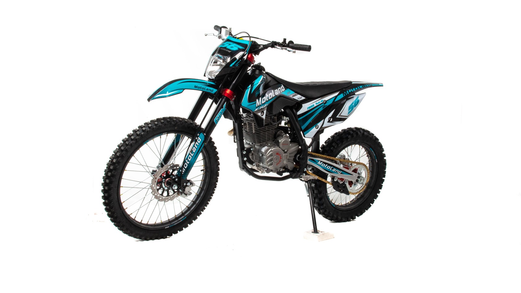 Мотоцикл Motoland CRF 250 оснащен топовым двигателем 172 FMM с карбюратором NIBBI PE 30 ! Идеален для езды по бездорожью, т. к. имеет отличную проходимость на песке и мягком грунте.Объем двигателя 250 см3 и мощность 21 л. с. обеспечивает хорошую динамику разгона и высокую максимальную скорость. Коробка передач механическая, пятиступенчатая. Карбюратор NIBBI PE 30 оснащен резиновым патрубком, что обеспечивает снижение вибрации. Объём топливного бака 6 литров. Передняя подвеска — телескопическая, не регулируемая, перевёрнутого типа. Вилка GPX Professional оснащена клапанами, для стравливания избыточного давления, что позволяет значительно повысить ресурс работы сальников. Задняя подвеска с прогрессией, амортизатор имеет регулировку отбоя и преднатяг пружины. Рама мотоцикла полудуплексная, стальная. Сиденье кроссовое, с противоскользящим покрытием. Обода колес спецованные, стальные, черного цвета с алюминевыми, окрашенными литыми ступицами. Покрышки 80/100 "21 110/100 "18 с мощными грунтозацепами обеспечивают превосходное сцепление с грунтом и позволяют контролировать управляемость на нестабильных поверхностях кроссовых трасс. Размер заднеего колеса — 18 дюймов (450 мм), переднего — 21 дюйм (530 мм). Передние и задние тормоза дисковые, с надёжными двухпоршневыми суппортами. Руль GPX переменного сечения с алюминевыми литыми траверсами, выдерживает значительные нагрузки, в том числе при падениях. Высота по рулю и седлу позволяет чувствовать себя удобно как людям среднего, так и большого роста. Мотоцикл Motoland CRF 250 оснащён светодиодной фарой головного света. Система зажигания электронная (CDI). Запуск двигателя комбинированный ножным кикстартером и электростартером. Так же в комплекте есть щиток для номера, который ставится вместо фары при необходимости.