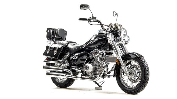 Дорожный мотоцикл MOTOLAND WOLF 250 - стильный и лаконичный дизайн способен порадовать глаз любого мужчины. Мощный движок и крутейшие технические характеристики - вот, что отличает его от собратьев. Этот байк просто создан для езды по городским джунглям!Чоппер WOLF 250 сразу привлекает внимание своим внешним видом. Выполнен в винтажно-классическом стиле с удлинённой рамой и передней вилкой, обилием хромированных элементов. Солидный, матово-чёрного цвета — этот чоппер выглядит значительно лучше своей ценовой категории.Мото чоппер весит 130 кг. Колёса спицованные, диаметр колёс — 16 дюймов (400 мм). Передний тормоз гидравлический дисковый с однопоршневым суппортом, прочно закреплён на 6 болтов. Тормозной шланг защищён специальным изолятором. Задний тормоз барабанный, легко регулируется даже в полевых условиях.Рама классическая, закольцованного типа. Вилка телескопическая, удлинённой формы, дополнительно защищена специальными металлическими кожухами. Есть нижние и верхние массивные траверсы. Руль сечения 22 мм с высоким подъёмом удобен для мотоциклистов разного роста. Зеркала заднего вида большие, с хорошим обзором. На ручках расположены кнопки дальнего и ближнего света, сигнал аварийной остановки, кнопки включения и выключения двигателя, блинкер, поворотники, звуковой сигнал. Также на руль вынесен подсос, что удобно при холодном запуске. Переднее и заднее крыло сделаны из прочного жёсткого пластика и близко прилегают к колёсам, подчёркивая городское и шоссейное назначение чоппера. На заднем крыле установлен стоп-сигнал и крепление для номера.Удлинённый руль и форма сиденья делают посадку максимально комфортной и позволяют держать спину прямо, снимая часть нагрузки с поясницы. Большое сиденье удобно для длительных поездок. Сиденье для пассажира оснащено специальной мягкой спинкой.Чоппер просто утопает в свете. На мотоцикл установлена большая фара ближнего и дальнего света, большие поворотники, светоотражатели. Такой чоппер невозможно не заметить даже в темноте или при плохой видимости.Купить мотоцикл чоппер стоит и за технические характеристики. Мото чоппер оснащён 4-тактным 1-цилиндровым двигателем с воздушным и маслорадиаторным охлаждением. Мотор мощностью 18 л. с. и объёмом 250 кубов разгоняет чоппер до 110 км/ч. Карбюратор с ускорительным насосом даёт хороший отклик на резкий старт и позволяет быстро набрать скорость. Расход топлива небольшой — 4 литра на 100 км. Трансмиссия механическая, включает 5 скоростей. Подножки удобные, дают возможность легко переключать передачи. Мотоцепь 420 защищена специальным кожухом. На чоппер установлены 2 выхлопные трубы.На панели приборов есть спидометр, индикаторы поворотников, индикатор нейтральной передачи, дальний свет. Здесь Вы можете получить всю информацию о состоянии мотоцикла: километраж, пробег, скорость, обороты двигателя.