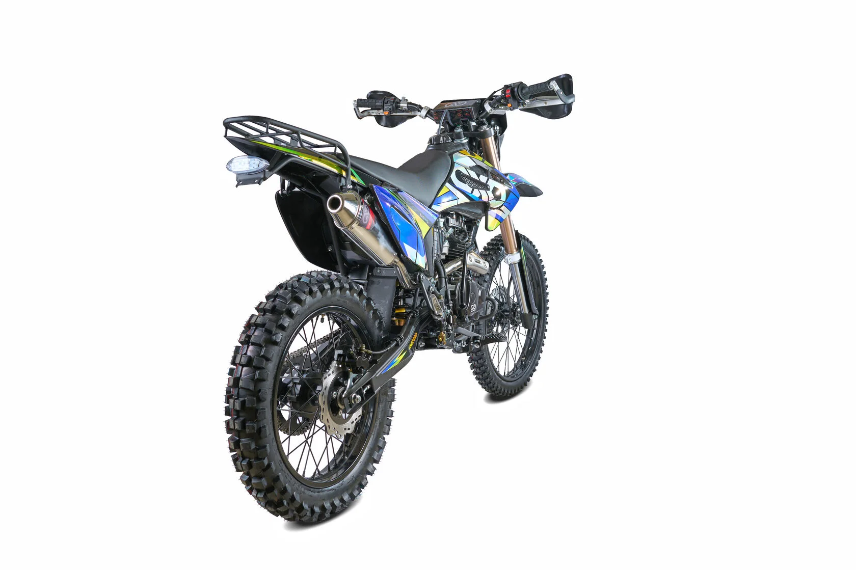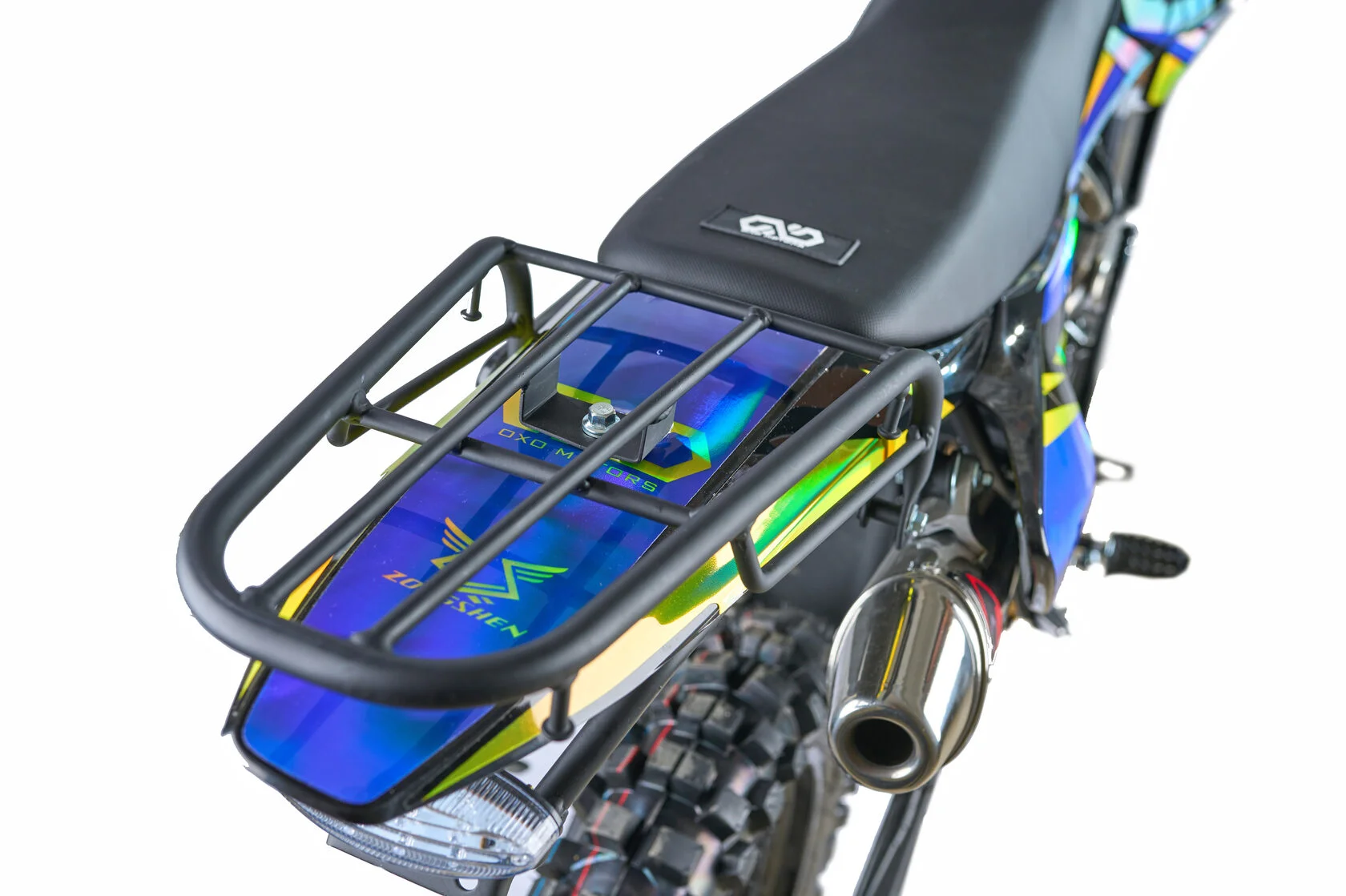 ДвигательДвигатель ZS165FMM - 4-тактный двигатель воздушного охлаждения объёмом 223 куб см с двумя клапанами, оснащён балансировочным валом, благодаря которому уменьшается избыточная вибрация, передаваемая от двигателя на раму и общую конструкцию техники. Характеризуется хорошей тягой с самых низов и лёгким пуском с помощью электростартера. Двигатель отлично зарекомендовал себя в качестве надёжного, универсального, неприхотливого мотора с хорошими характеристиками.РамаРама мотоцикла OXO производится из труб шестигранного сечения хром-молибденовой стали, которая является очень прочной и легкой. Геометрия рамы, благодаря правильно выверенному центру тяжести и углу наклона вилки - способствует наилучшей управляемости устойчивости мотоцикла на низкой скорости.ПодвескаПередняя вилка перевернутого типа. Мотоцикл LITE 250 снабжен моноамортизатором, который соединен посредством системы рычагов прогрессии. Система прогрессии, обеспечивает равномерную, мягкую работу и увеличивает длину рабочего хода подвески.КолесаРазмер передней покрышки: 80/100-21. Размер задней покрышки: 120/100-18. Они прекрасно себя ведут по песку и грязи, что позволяет райдеру отлично показать себя на пересеченной местностиТормозная системаТормозная система мотоцикла - полностью гидравлическая с армированными шлангами. Спереди и сзади установлен двухпоршневой суппорт. Данная конфигурация тормозных механизмов, позволит быстро и безопасно остановиться с максимальной скорости даже на бездорожье.РульВажная часть современного эндуро мотоцикла - усиленный руль переменного сечения Мотоцикл укомплектован панелью приборов..