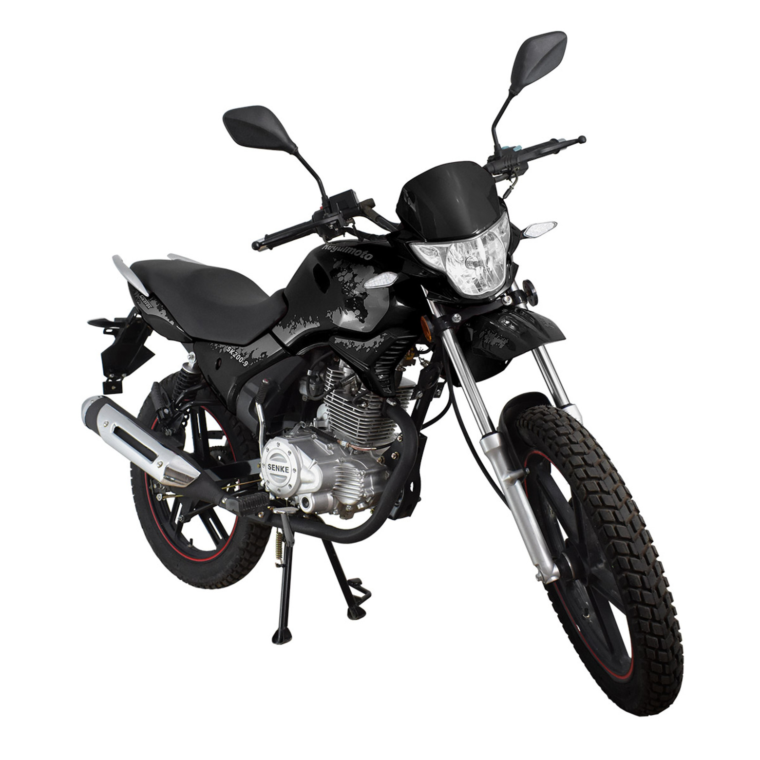 Компания «Regulmoto» представляет вниманию поклонников двухколесной мототехники мотоцикл Regulmoto SK200-9 – надежный и доступный для многих байк с широкими эксплуатационными возможностями. Мотоцикл Regulmoto SK200-9 – один из ярких представителей линейки малокубатурной мототехники известного азиатского производителя Senke. Мотоциклы производства одного из крупнейших китайских концернов пользуются заслуженным признанием экспертов и мотолюбителей в различных частях света, включая Европу и Америку. Продукцию Senke отличают не только одно из лучших на рынке соотношений достойного качества и демократичной цены, но и солидный эксплуатационный ресурс, высокая надежность, простое и недорогое сервисное обслуживание. В раме мотоцикла с 18-дюймовыми колесами на литых дисках установлен 4-тактный 200-«кубовый» двигатель с воздушным охлаждением, который способен развивать максимальную мощность в 13,6 лошадиных сил. Наличие у двигателя балансирного вала способствует снижению вибрации при работе мотора. 5-ступенчатая трансмиссия, электростартер, полноценная подвеска, представленная телескопической вилкой спереди и двумя амортизаторами и маятником сзади, цифровая приборная панель и емкий топливный бак – все это позволит получать максимум удовольствия от поездки. За безопасность использования мотоцикла Regulmoto SK200-9 отвечают надежная тормозная система (дисковый тормоз спереди и барабанный сзади), комплект светового оборудования и зеркал заднего вида. Regulmoto SK200-9 отличают современный внешний вид и обширные возможности практического использования: комплектация байка dual-sport резиной и увеличенный дорожный просвет позволяет эксплуатировать его как на асфальтированных дорогах, так и на проселках и тропах, включая легкое бездорожье.