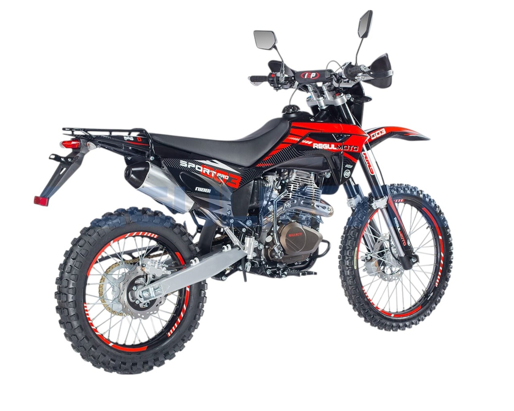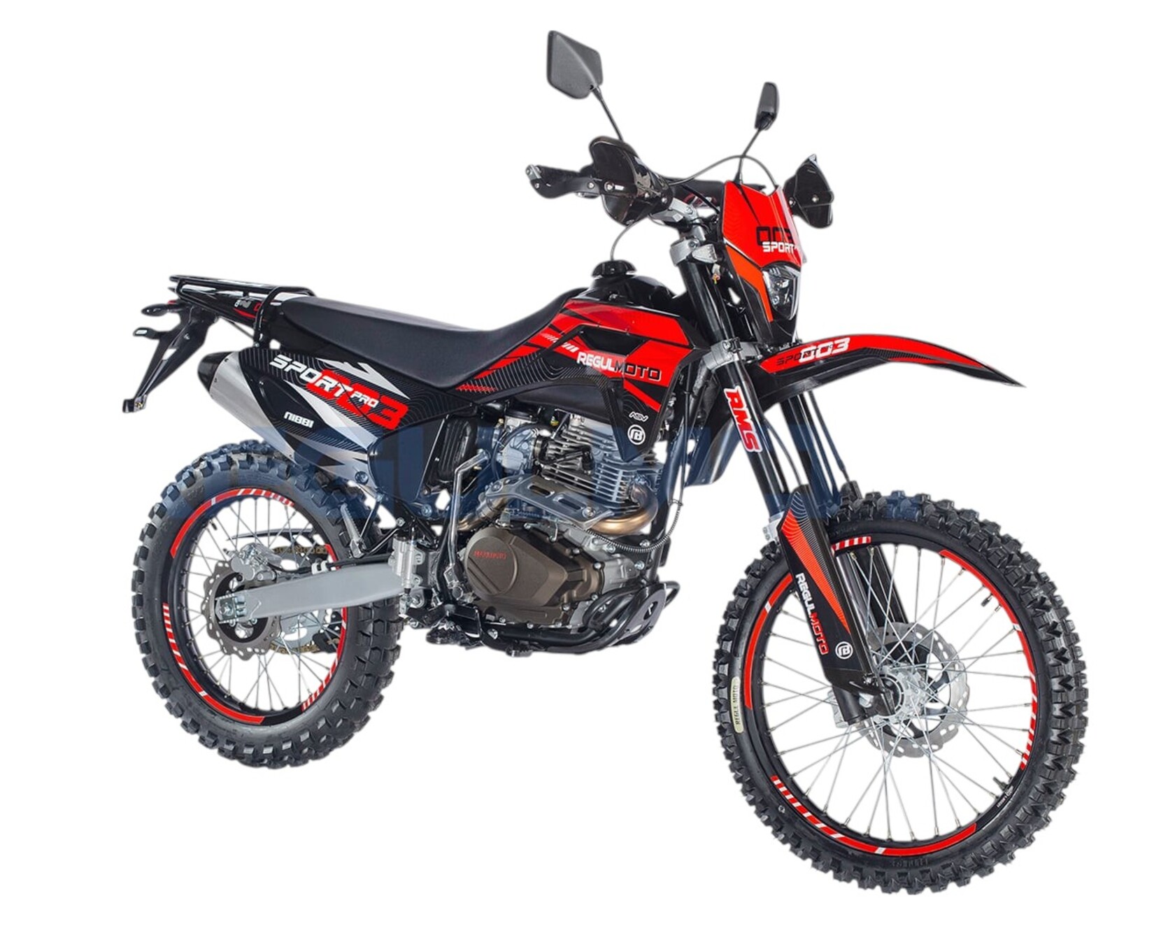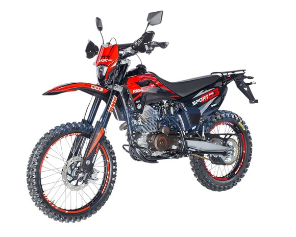 Мотоцикл Regulmoto Sport-003 PR PRO. - Двигатель 172, балансир, 300 поршевая Zongshen, алюминиевые обода, злая резина, новый пластик облицовки бензобака, колодки синтетика.Передние амортизаторы с быстрой регулировкой, 41мм. Алюминиевые диски из одного из самых прочных сплавов 7116. Из этого сплава производятся рули Renthal. Шины с увеличенными грунтозацепами, мягкий компаунд.