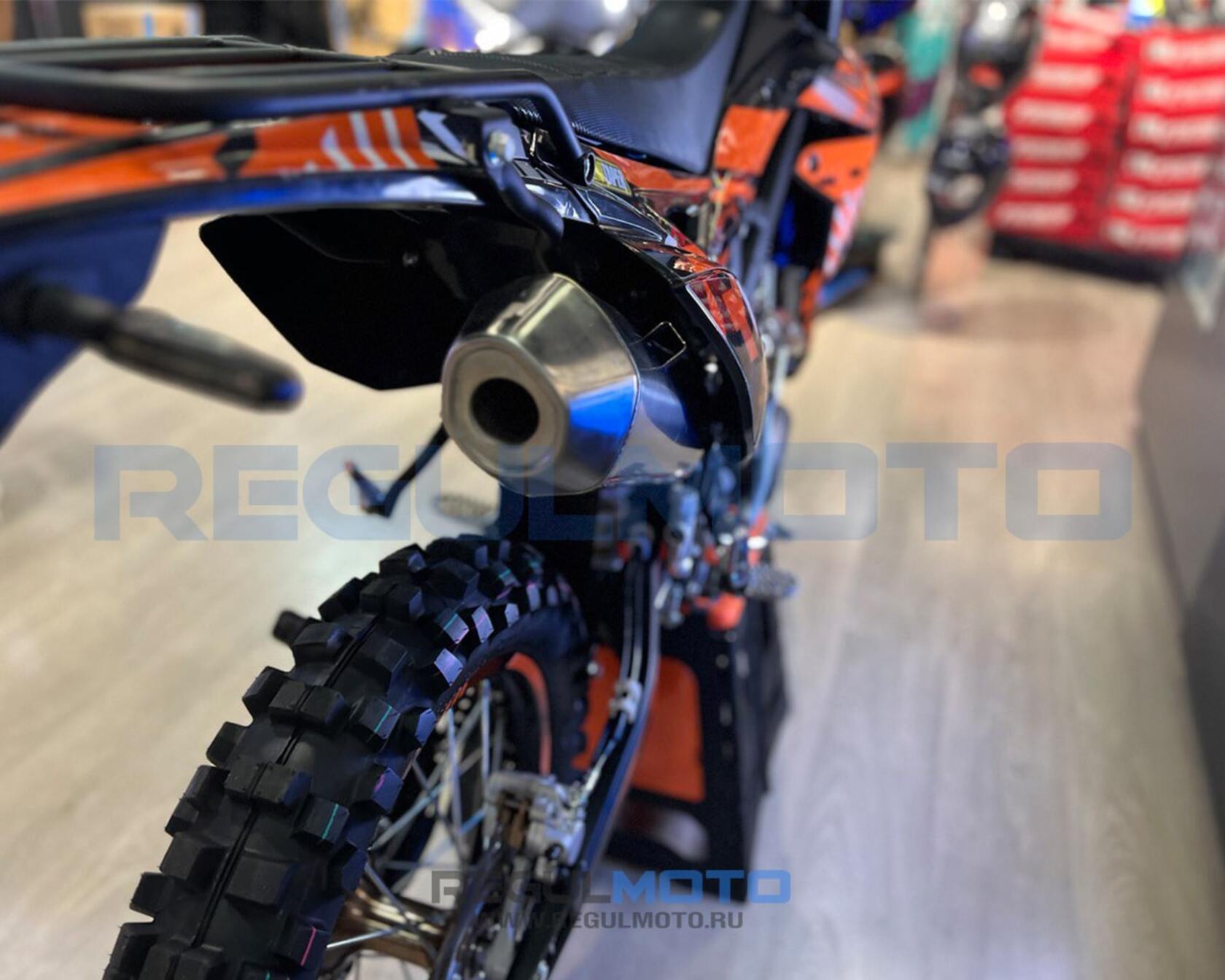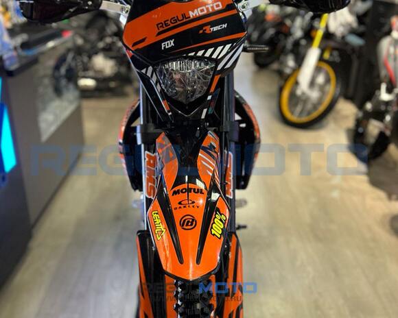 Regulmoto ZR PR Enduro 2024г. 4 клапана на цилиндр с балансирным валом«Regulmoto» представляет вниманию поклонников фри-райда мотоцикл Regulmoto ZR 4 valves. Стильный и доступный байк многоцелевого назначения найдет применение в качестве надежного аппарата для покорения бездорожья, а также может использоваться для решения широкого круга утилитарных задач и передвижения по дорогам общего пользования.В основе конструкции Regulmoto ZR 4 valves – мощная стальная рама, поставленная на колеса 21/18, которые наилучшим образом подготовлены к офф-роаду. Ободья и ступицы колес изготовлены из алюминия, также установлены усиленные спицы и буксаторы, надежно фиксирующие покрышки на ободе. Подвеску эндуро-байка представляют длинноходная телескопическая вилка-«перевертыш» спереди и стальной маятник с прогрессией и моноамортизатор с компенсационным резервуаром сзади. Работу амортизаторов при необходимости можно настроить при помощи регулировки сжатия/отбоя.Силовая установка мотоцикла представлена одноцилиндровым 4-тактным двигателем Zongshen ZS175FMM-7 с воздушным охлаждением рабочим объемом __ см3 с балансировочным валом 4-мя клапанами; за подготовку топливной смеси отвечает карбюратор Nibbi PE30. Технический потенциал надежного и производительного двигателя позволяет демонстрировать __лошадиную силу максимальной мощности и максимального крутящего момента.Regulmoto ZR PR 4 valves также привлекает внимание отличными внешними данными: мотоцикл комплектуется крепким и гибким пластиком с ярким дизайном, выполненным в узнаваемой стилистике популярной модели известного производителя. Подбор качественных компонентов также заслуживает внимания:• электронная приборная панель;